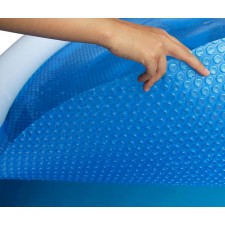 Dimensions : Ø 6 m x e. 180 micron. - bulle : Ø 16 mm. Poids : 6,8 kg. Résistante aux rayons UV. prédécoupée, redécoupable et non bordée.