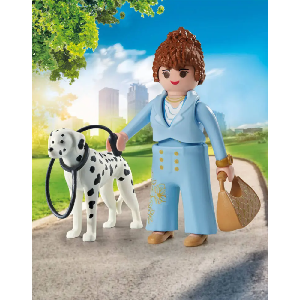 Figurines Playmobil représentant une femme d’affaires et son dalmatien - Fournies dans un conditionnement en carton contenant 8 pièces à monter - Disposent de détails réalistes comme la tête du dalmatien qui peut bouger en haut et en bas et le bracelet amovibles de la femme - Recommandées stimuler l’imagination des enfants de 4 ans et plus - Affichent une fabrication en plastique de haute qualité - Poids de l’article : 42 grammes - Dimensions de l’article : 9,3 cm de haut, 3,3 cm de large et 12 cm de long.