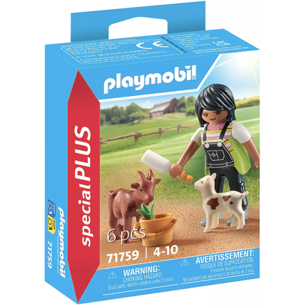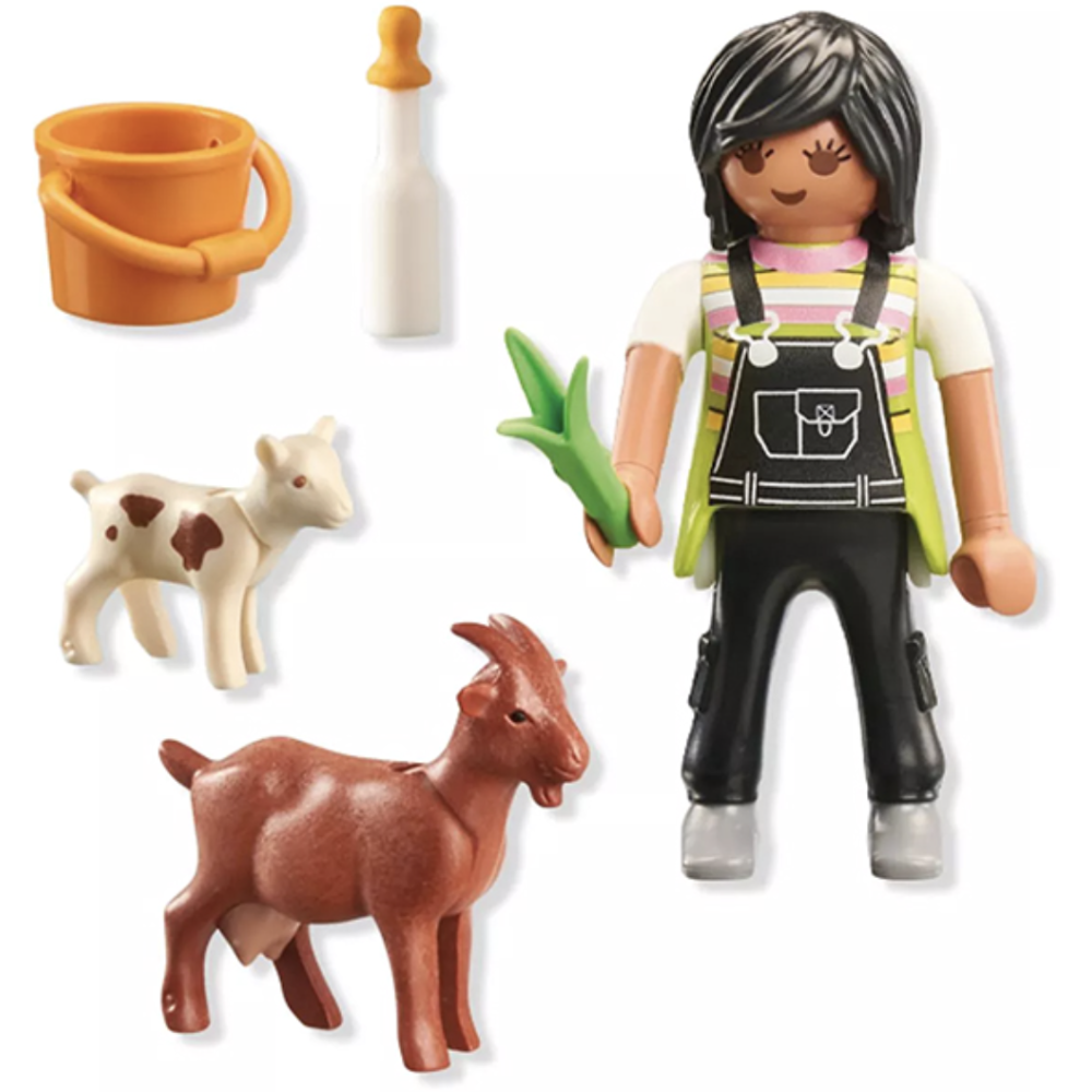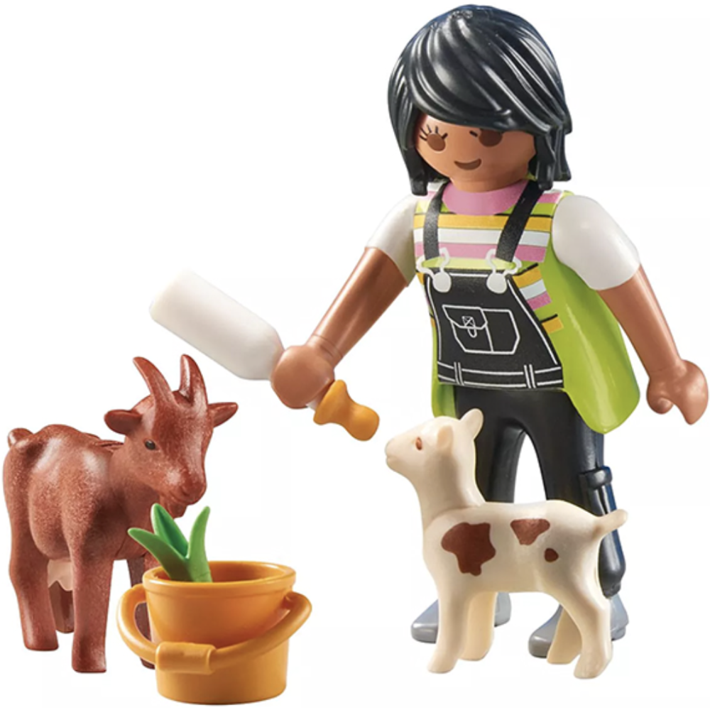 Figurine fermière avec chèvre et chevreau pour des aventures à la ferme - Playmobil – gamme Impulse - Encourage l’imagination et la créativité - Permet aux enfants d’apprendre à prendre soin des animaux - Jeu éducatif et ludique autour du thème de la ferme - Âge recommandé : dès 3 ans - Dimensions : L1 x l1 x h1 cm - Code-barres : 4008789717597 - Avertissement : ne convient pas aux enfants de moins de 3 ans (risque d’asphyxie dû aux petits éléments). Adresse du fabricant à conserver.