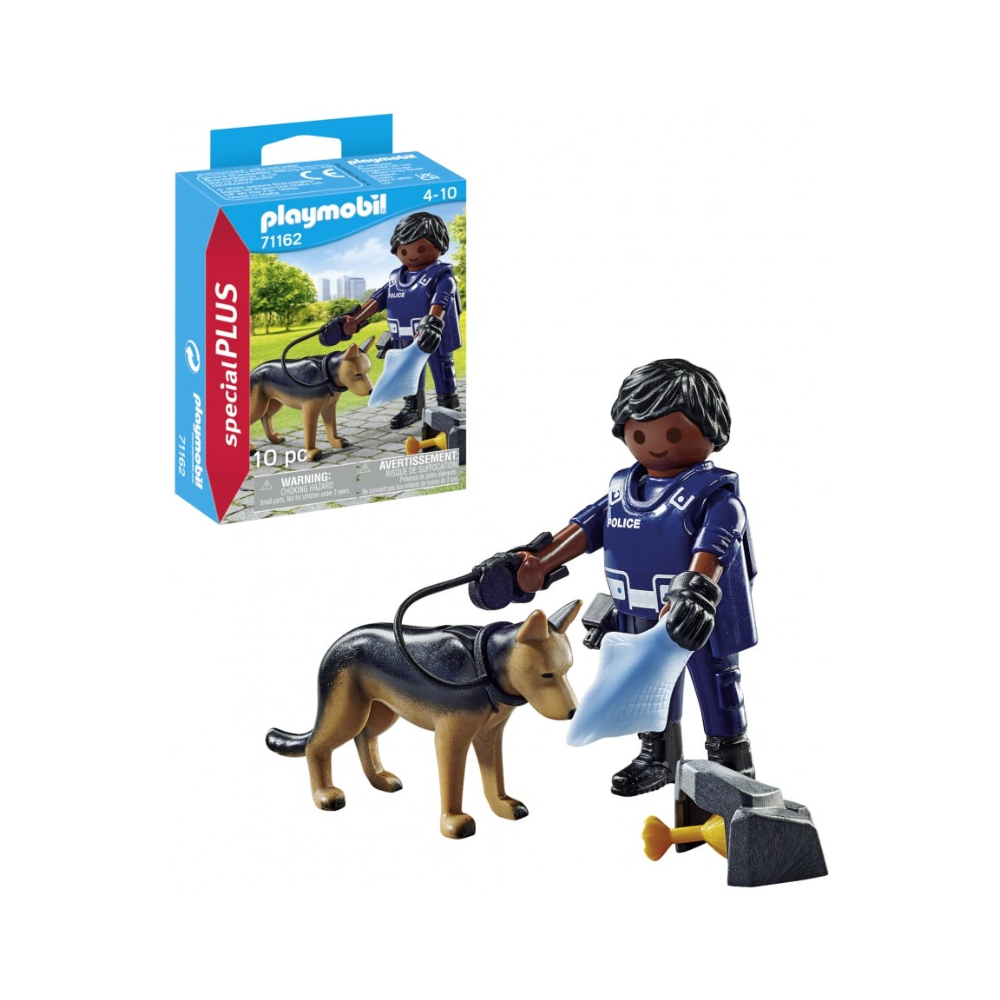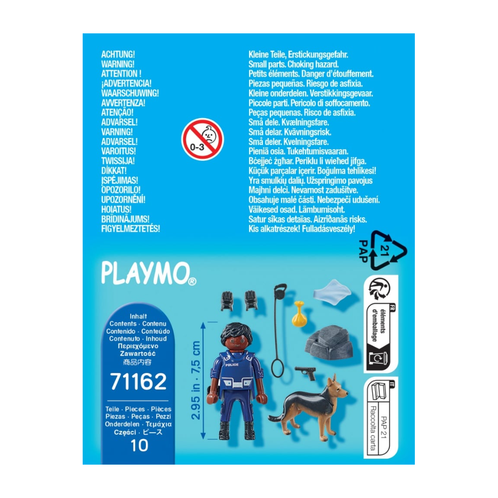 Policier et son chien de recherche - Playmobil - Spécial plus - City action - 10 pièces - multicolore - dès 4 ans - EAN 4008789711625.
