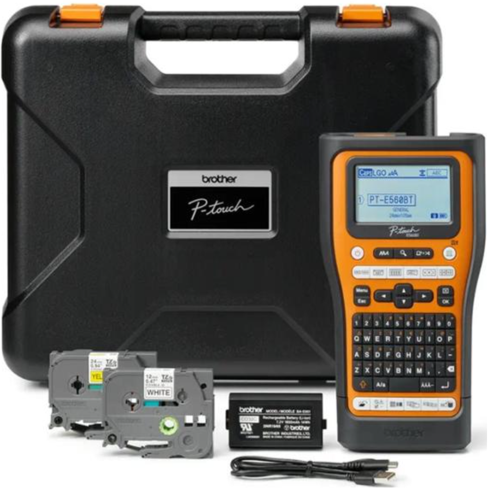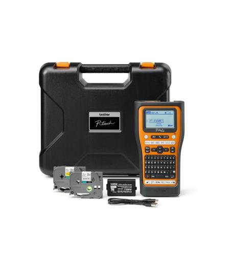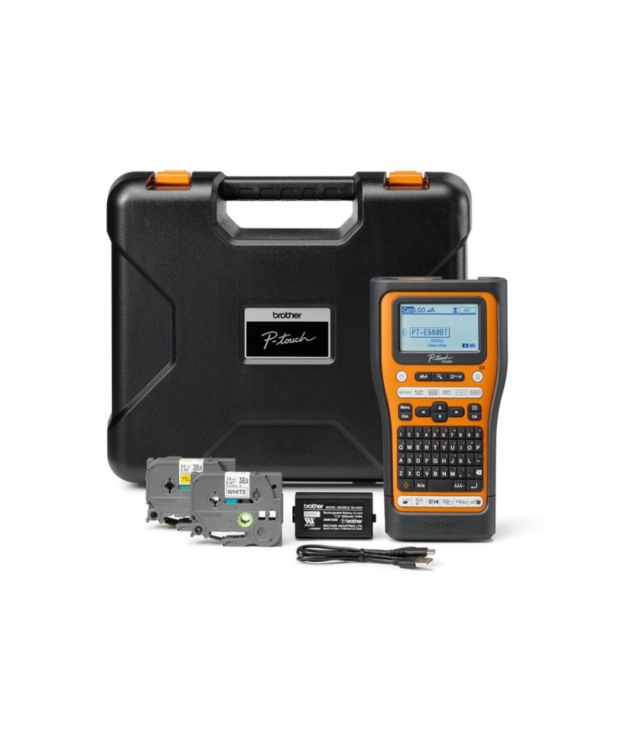 Brother P-Touch PT-E560BTVP - ?tiqueteuse - Noir et blanc - transfert thermique - Rouleau (2,4 cm) - 180 dpi - jusqu'? 30 mm/sec - USB 3.0, Bluetooth 5.0 - outil de coupe - impression miroir, Fonction de coupe pleine & moiti?, aper?u avant impression - noir et orange