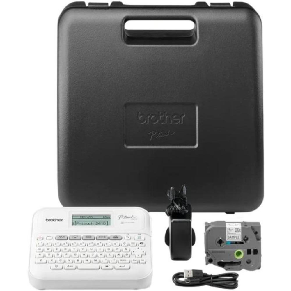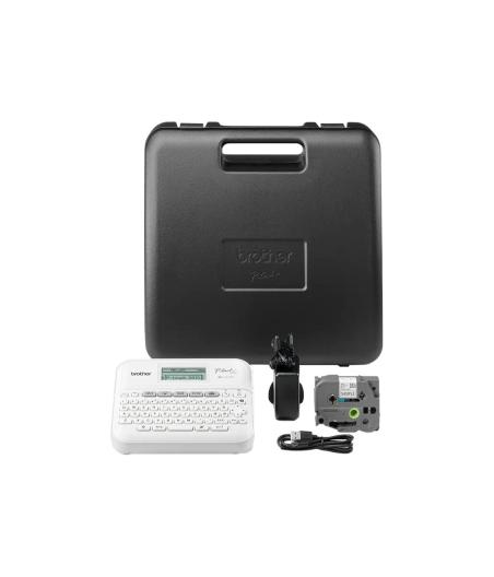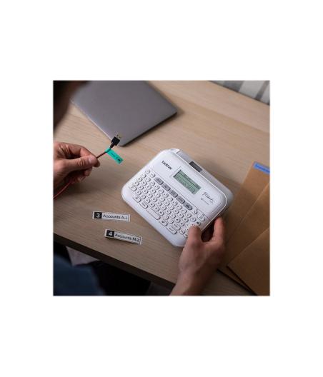 Brother P-Touch PT-D410VP - Étiqueteuse - Noir et blanc - transfert thermique - 18 mm de large - 180 dpi - jusqu'à 20 mm/sec - USB - outil de coupe - impression miroir, impression verticale - blanc