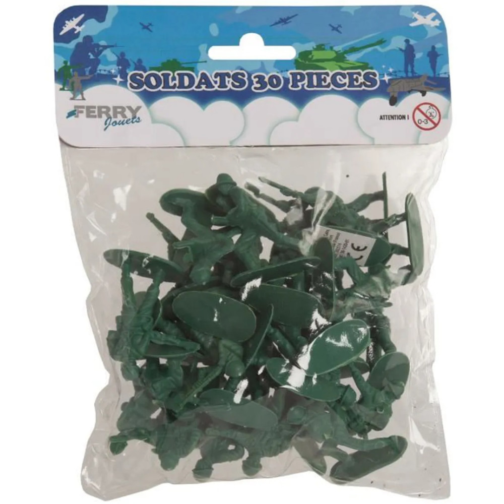 Sachet de 30 soldats en plastique. Ne convient pas aux enfants de moins de 3 ans.