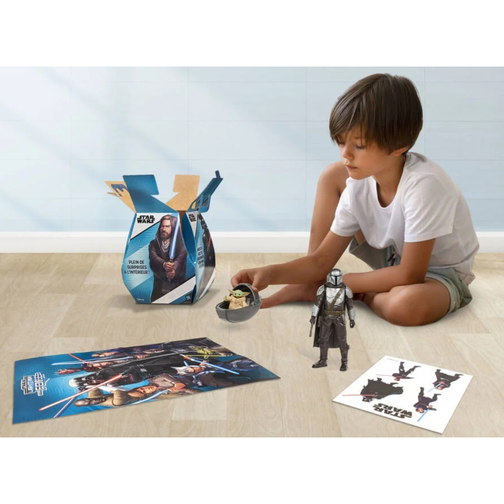 Les enfants pourront rentrer dans le monde de Star Wars et imaginer plein de nouvelles histoires grâce à la boite surprise Star Wars ! Inclut 2 figurines 15cm, une planche de stickers et un poster A3 - Cette invitation à imaginer de multiples aventures, avec ses super-héros préférés, va inspirer votre enfant.
