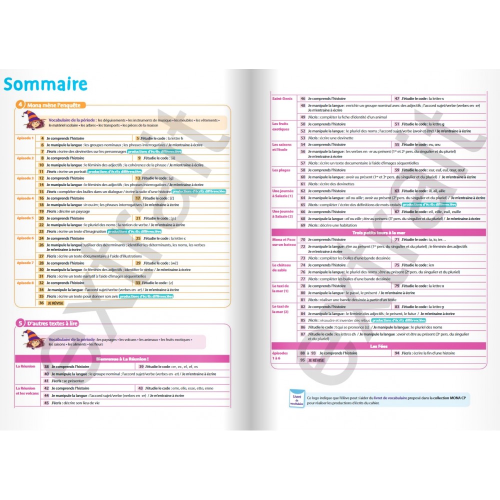 Pour les 2 dernières périodes de l'année, le cahier d'exercices 2, avec : Des activités de compréhension et de vocabulaire ; d’étude du code ; de manipulation de la langue. Des exercices de productions d’écrit différenciés pour s’adapter à l’hétérogénéité de la classe, avec des renvois vers le livret de vocabulaire. Des pages de révisions à la fin de chaque unité.