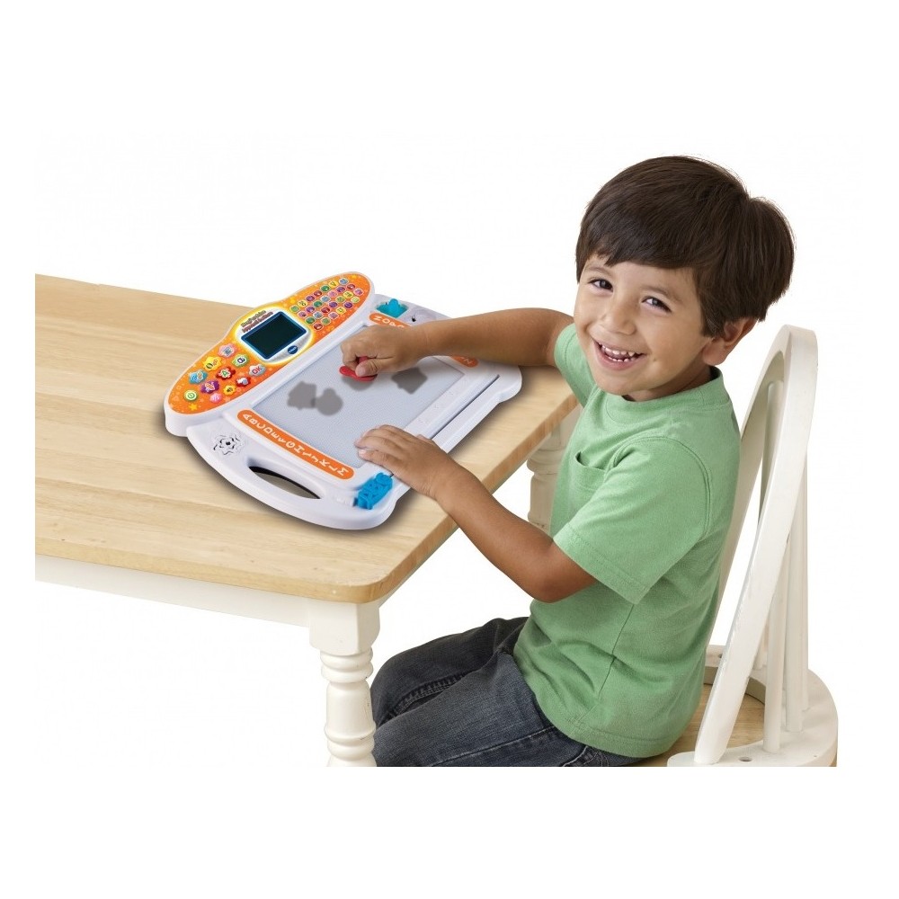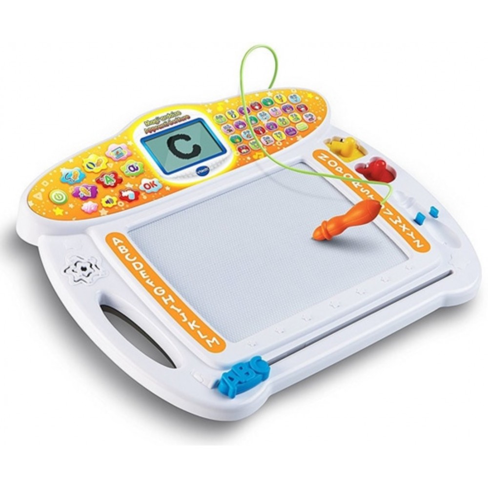 Une ardoise magique parlante et musicale qui apprend à tracer les lettres majuscules et minuscules en suivant les instructions données à voix haute. Il découvrira également le dessin en apprenant à dessiner les lignes et les formes. Cette ardoise créative et artistique permet aussi à votre enfant de laisser libre cours à son imagination : inventer, dessiner et colorier des créations. Elle dispose de 26 touches pour découvrir les lettres et un mot commençant par chacune des lettres de l'alphabet. Avec un écran interactif affichant des animations amusantes et le tracé des lettres et une voix qui guide votre enfant le long du jeu. Elle comprend 6 modes de jeu. Ce jouet musical dispose également de 25 mélodies et des sons amusants.