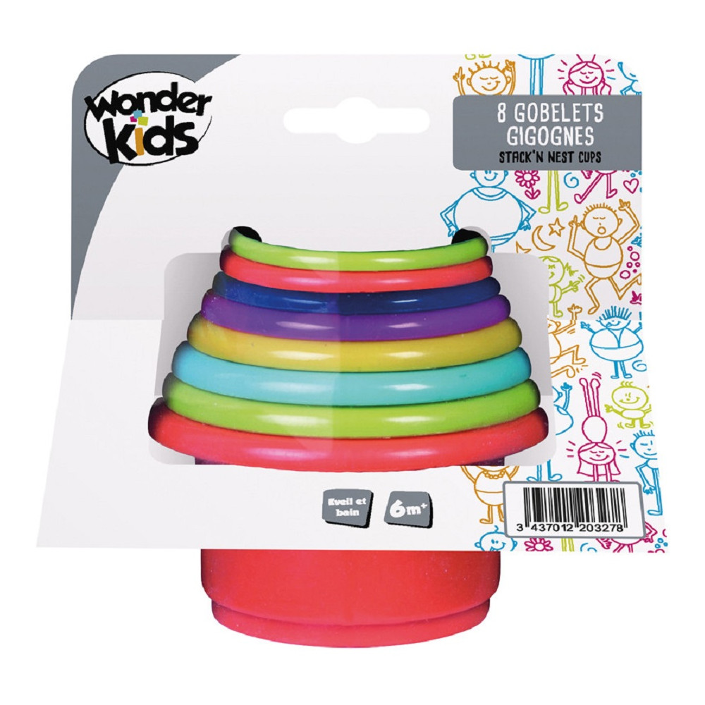 Sur le tapis de jeu, dans le bain, à la piscine, à la plage ou ailleurs, ces 8 petits gobelets permettent de jouer sur toutes les surfaces.