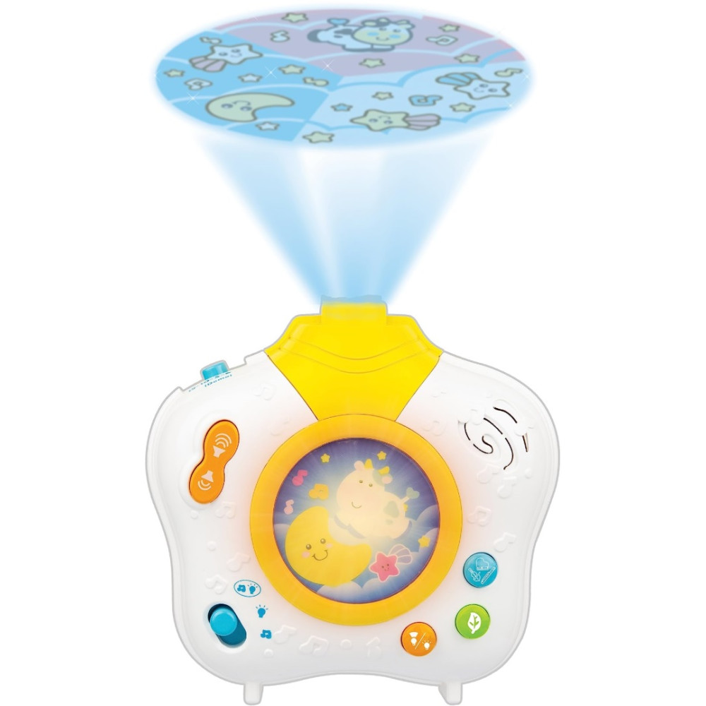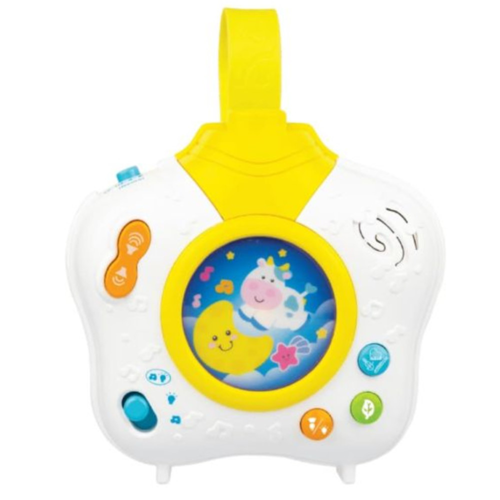 Veilleuse musicale DREAMLAND pour bébé avec scène de projection rotative en couleur avec 3 sections de mode - Différentes combinaisons de lumières et de mélodies, se fixe au berceau ou se tient seul sur le dessus de la table - Apaisez votre bébé pour qu'il dorme - Instruments, sons de la nature et modèle d'éclairage.