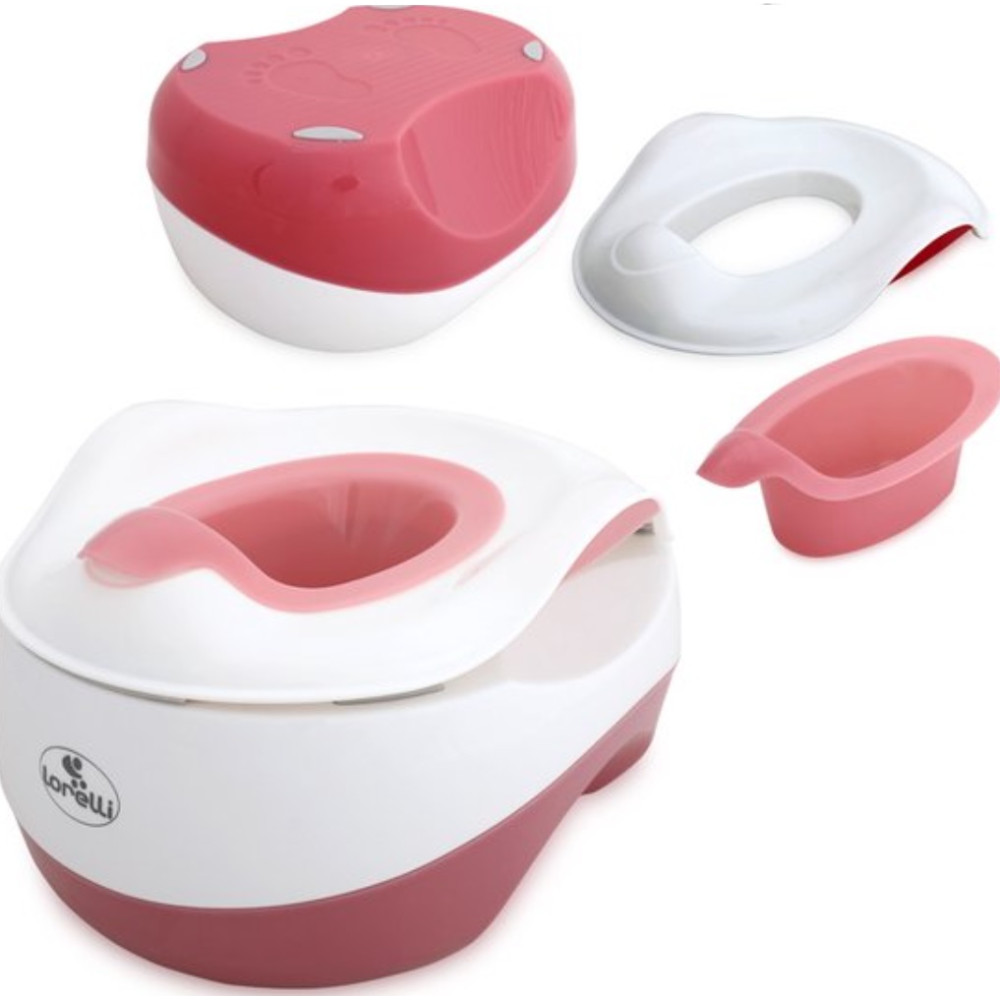 Pot 3 en 1 Lorelli Transform - Couleur : blanc avec rose - Phase 1 : pot avec siège moelleux - Phase 2 : WC réducteur avec marche - Phase 3 : Étape pour le lavabo - Avec couvercle à charnière - Le pot est amovible et facile à nettoyer - Antidérapant (caoutchouc) - Convient aux enfants à partir de 6 mois - Poids maximum : 35 kg - Dimensions : 20x31x36cm.