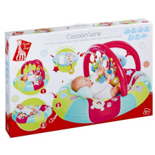 Le fameux Cocoon'aire se refait une beauté ! Fraichement relooké avec de nouveaux coloris et de nouvelles activités, l'espace de jeux de bébé garde toutes les caractéristiques qui font son succès ! Confortable et évolutif, le Cocoon'aire propose un matelas gonflable, une arche d'activités ainsi qu'un tableau textile pour éveiller les sens de bébé. 3 positions de jeu : En position allongée, bébé découvre les activités qui l'entourent, sur le matelas, sur l'arche et le tableau. En position assise, bébé s'amuse avec les activités tout en étant maintenu par le coussin. En retirant l'arche, bébé joue en étant protégé par les rebords de sécurité.
