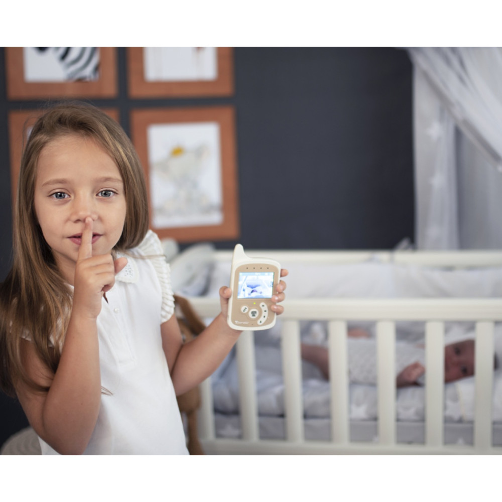 Portée jusqu’à 300 mètres. Communication bidirectionnelle. Fonction VOX. Batteries rechargeable pour la caméra et le moniteur (inclus dans le kit). Capteur de température dans la pièce du bébé. Mélodies pour apaiser bébé. Alarme d’alimentation pour les repas. Alerte faible autonomie. Alerte de portée dépassée. Alerte de température élevée ou basse. Unité parent portable avec clip ceinture et support. Ce vidéophone numérique vous permet de surveiller votre bébé même la nuit. Il est doté de nombreuses fonctionnalités supplémentaires telles que VOX, alarmes, mesure de la température, mélodies…