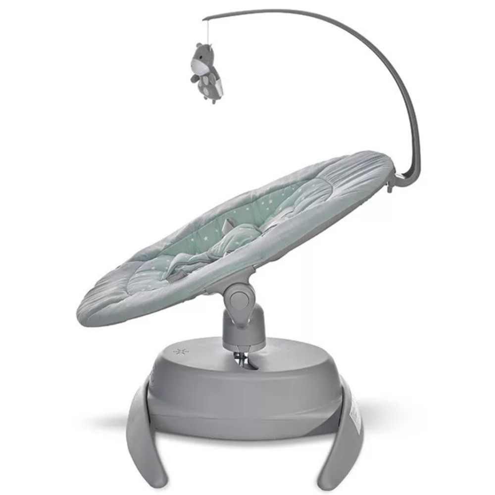 Balancelle électrique pour bébé avec siège rotatif à 360 degrés, dossier réglable à 3 positions, 3 vitesses de swing différentes et options de minuterie, commutation facile entre les modes de fonctionnement et les programmes. Joue 12 mélodies. Dispose d'un harnais de sécurité interne à 5 points. La housse est amovible et lavable, en peluche douce. Fonctionne aussi bien sur secteur que sur batterie