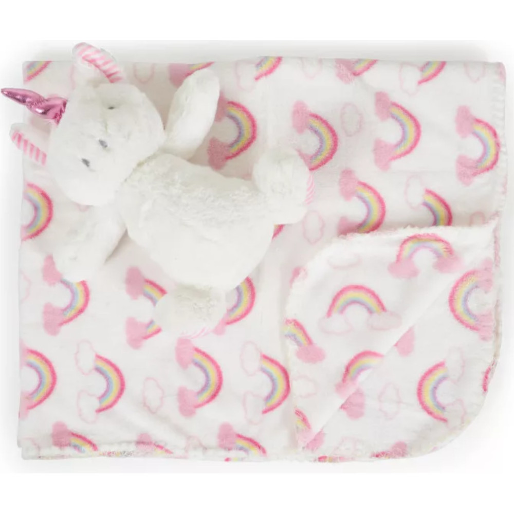 Couverture bébé de taille 90/75 cm avec peluche 23 cm. Cette couverture a une texture extrêmement douce et une peluche de 23 cm. Les matériaux sont non toxiques et totalement respectueux de la peau de votre bébé.