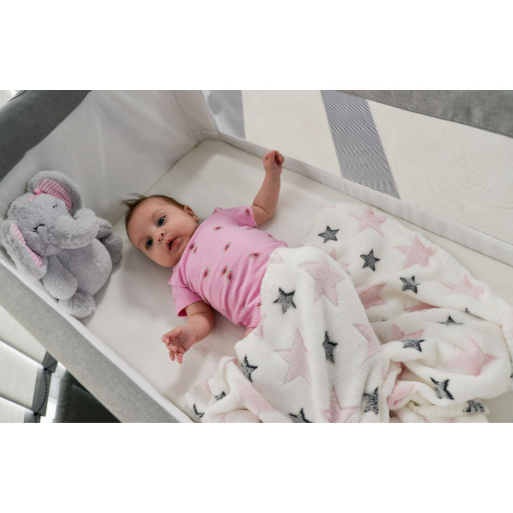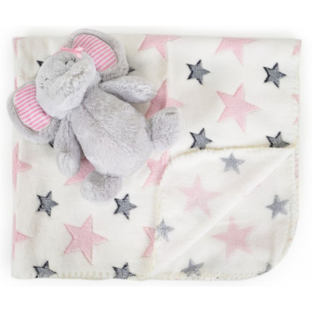 Grâce à son coffret cadeau, il peut également être un cadeau parfait pour une baby shower ! :) Les deux côtés sont en peluche douce et agréable au toucher. Avec peluche de 23 cm. La couverture est la couverture parfaite pour un berceau, une poussette ou même un tapis doux pour votre enfant. Taille : 90x75 cm (+/- 3cm).