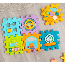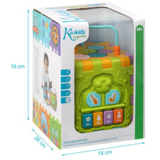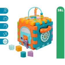 Cube éducatif pour bébé avec divers jeux : téléphone mobile interactif, trieur de formes, volant avec mélodies, jeu de précision, porte miroir 2 modes piano à 4 notes. Un jouet amusant et coloré qui développe les sens de bébé, sa motricité fine et la distinction des couleurs et des formes. Convient aux enfants de plus de 18 mois. Fonctionne avec des piles (3x R03 "AAA" - 1,5 V).