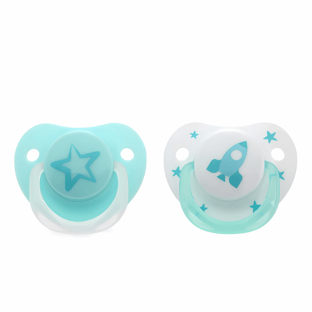 Sucettes en silicone 100 % haute qualité, souples et inodores, conçues pour le confort et le bon développement bucco-dentaire de bébé. Forme orthodontique inspirée de l’allaitement, bords arrondis et perforations anti-irritations. Résistantes à la chaleur, compatibles lave-vaisselle et stérilisateur.