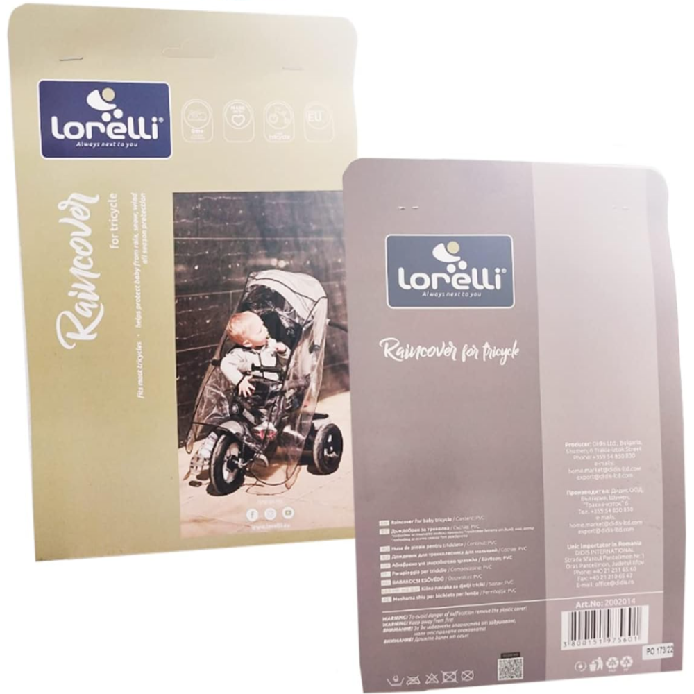 Housse de pluie universelle pour tricycle enfant procurant une protection physique du véhicule contre les intempéries et de la poussière – Fabriquée en plastique PVC entièrement étanche - Propose un design transparent qui assure une protection du tricycle sans le cacher - Convient à tous les types de tricycles, avec ou sans capot et/ou poignée parentale - Comprend une fenêtre pliante avec fermeture éclair au niveau des yeux - Conforme aux règles de sécurité européennes applicables.