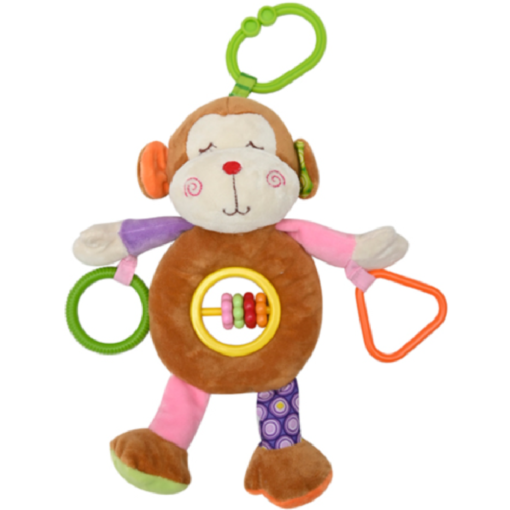 Peluche d’éveil en forme de singe recommandée pour les tout-petits - Offre une sensation agréable sur la peau de bébé et aide à développer son imagination et sa créativité - Fabriquée en plastique et textile non toxiques et hypoallergéniques - Garantit une excellente résistance aux mouvements du bébé - Dispose de plusieurs anneaux qui permet de le fixer à la poussette, au lit, au berceau ou au parc de jeu - Assure un entretien facile juste avec un chiffon doux et un savon doux.