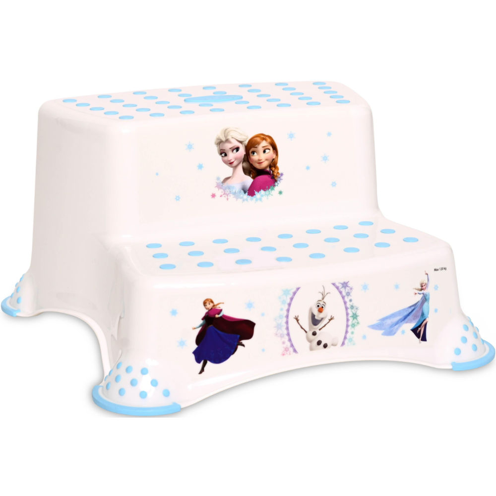 Réhausseur 2 marches Reine des neiges, un marchepied de salle de bain qui facilite l'accès aux toilettes ou au lavabo pour votre enfant - Pieds en caoutchouc dotés d'un système antidérapant qui empêche de glisser - Stabilité optimale grâce aux picots en caoutchouc situés sur les deux marches - Recommandé à partir de 3ans - Stable et sans risque de basculement - Peut -être utilisé comme tabouret - Facile à nettoyer.