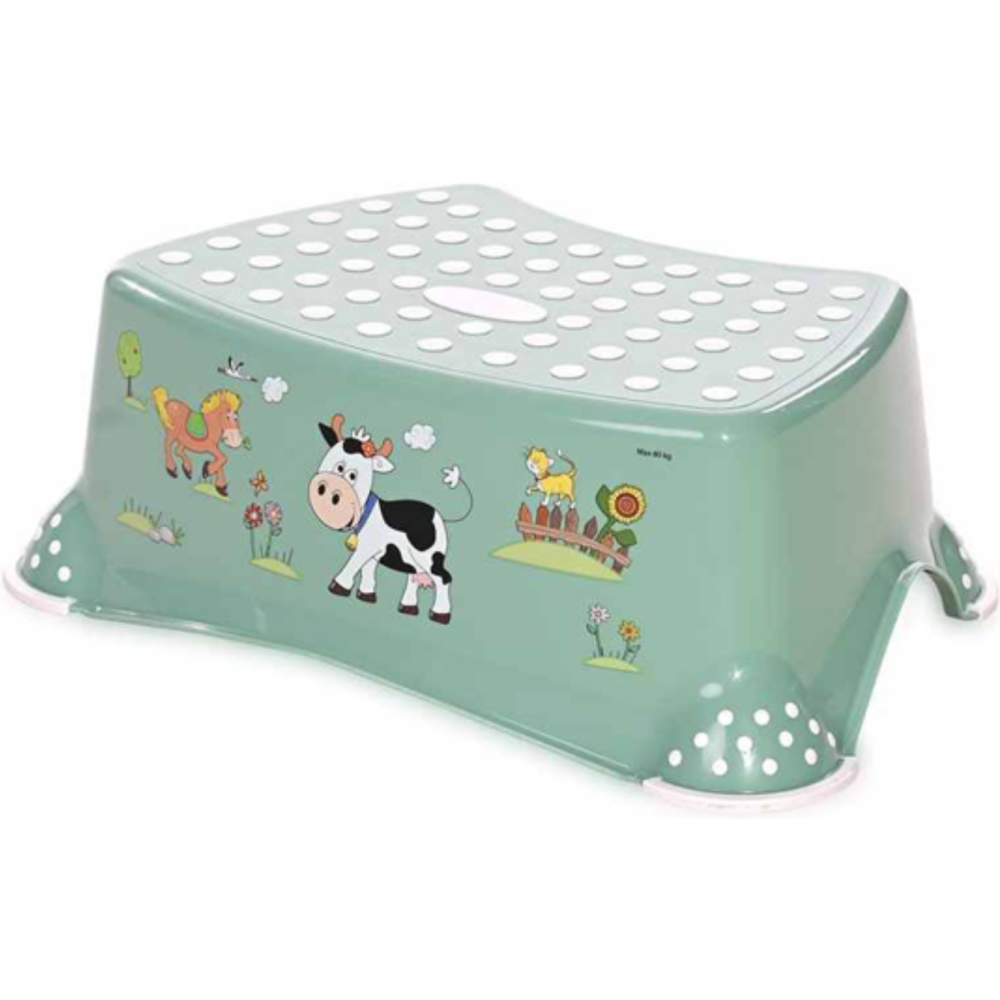 Escalier vert doté de 1 marche - Dispose d’une surface antidérapante spécialement conçue pour éviter les glissades - Equipé de pieds en caoutchouc qui assurent une stabilité maximale - Propose un design léger et confortable - Convient pour une utilisation 2 en 1, soit en escabeau soit en tabouret - Fabriqué en plastique non toxique de haute qualité - Supporte un poids maximal d'environ 80 kg - Dimensions : 40,5 cm de long, 29 cm de large et 14 cm de haut.