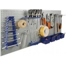 7 accessoires et boites en plastique pour panneaux porte outils. Ces accessoires se fixent sur votre panneau de rangement outils. Système de rangement qui vous permet de ranger vos outils de la meilleure des façons. Informations techniques. Matière : plastique bleu. Accessoires : 4 boites en plastique (11,3 x 8,5 x 7 cm), 1 porte clé, 1 support de tourne vis, 1 support perceuse. S'adapte aux panneaux muraux d'atelier x2 (réf. 3847).
