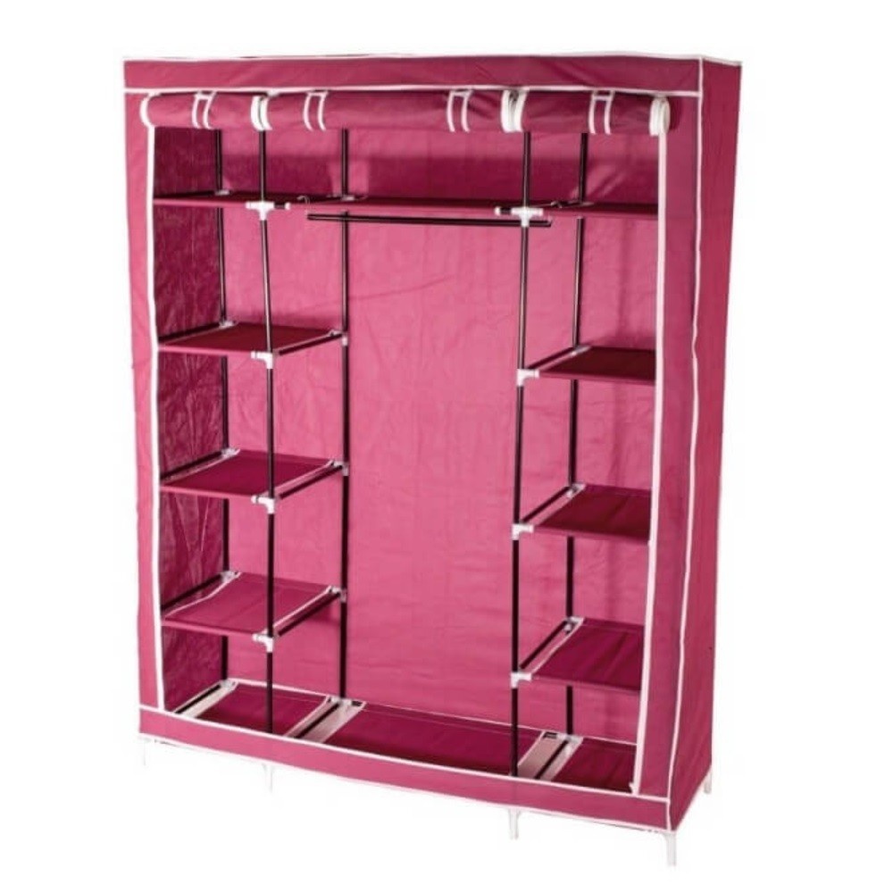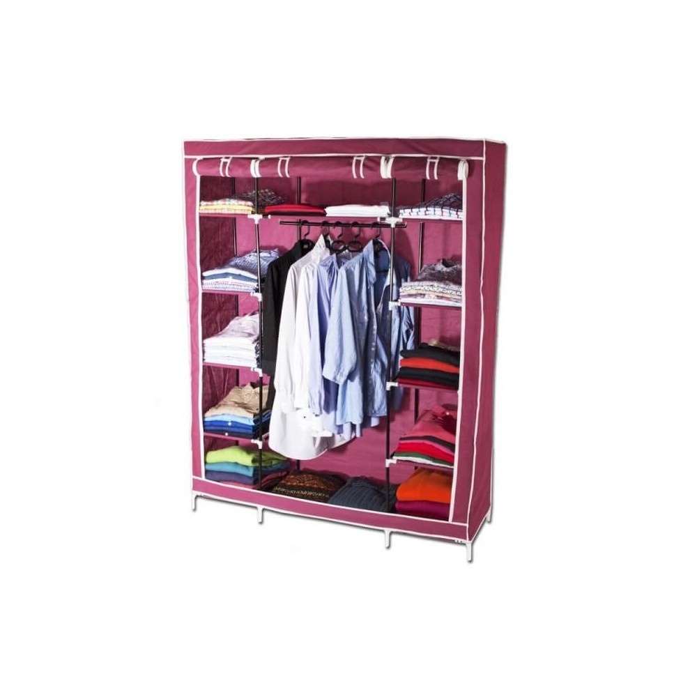 Dimensions : l. 177 x h. 135 x p. 43,5 cm • tubes : Ø 13 x e. 0,23 mm. Matière : tissu non tissé et tubes en acier. Poids : 3 kg environ. Coloris : bordeaux. Poids supporté : 3 kg / étagère.