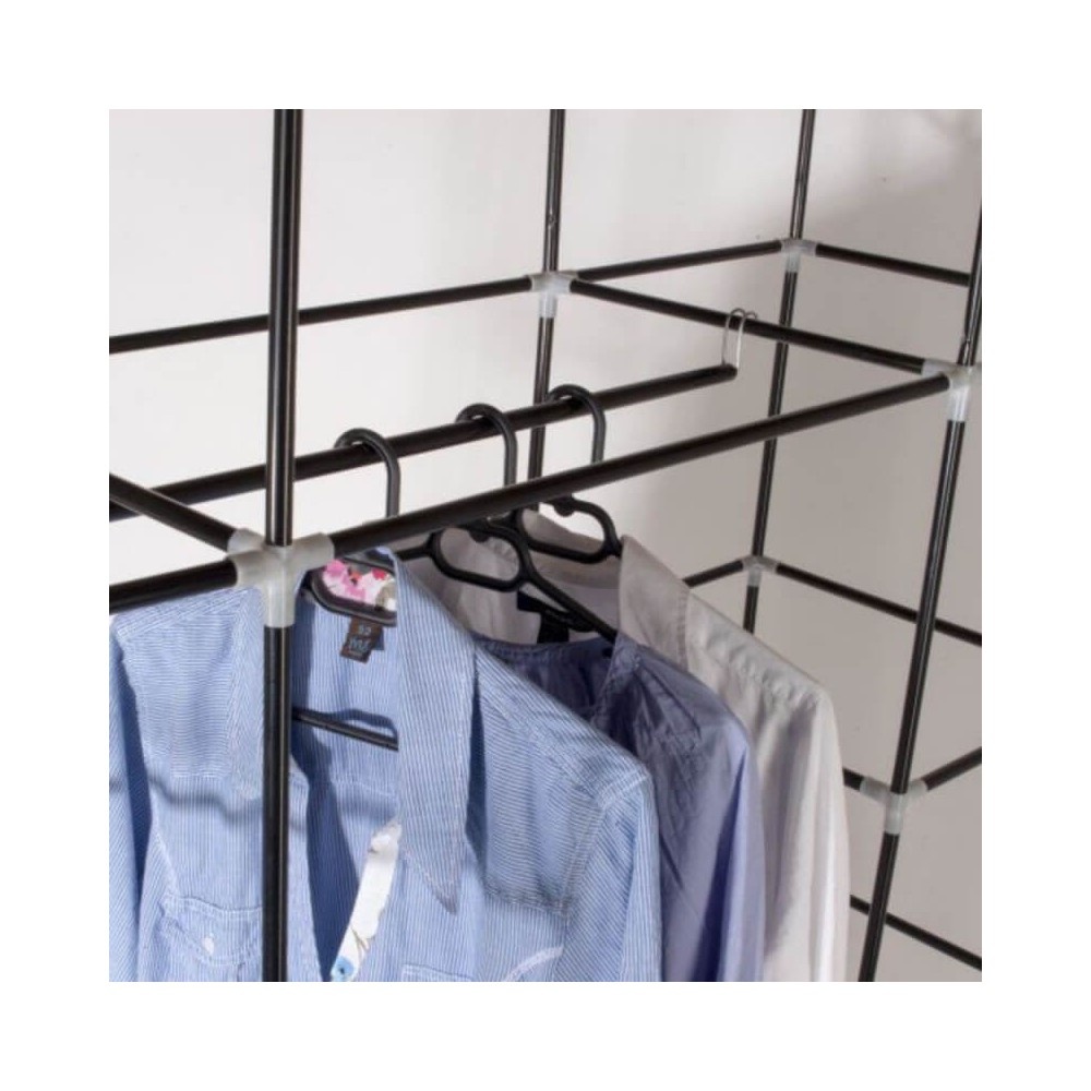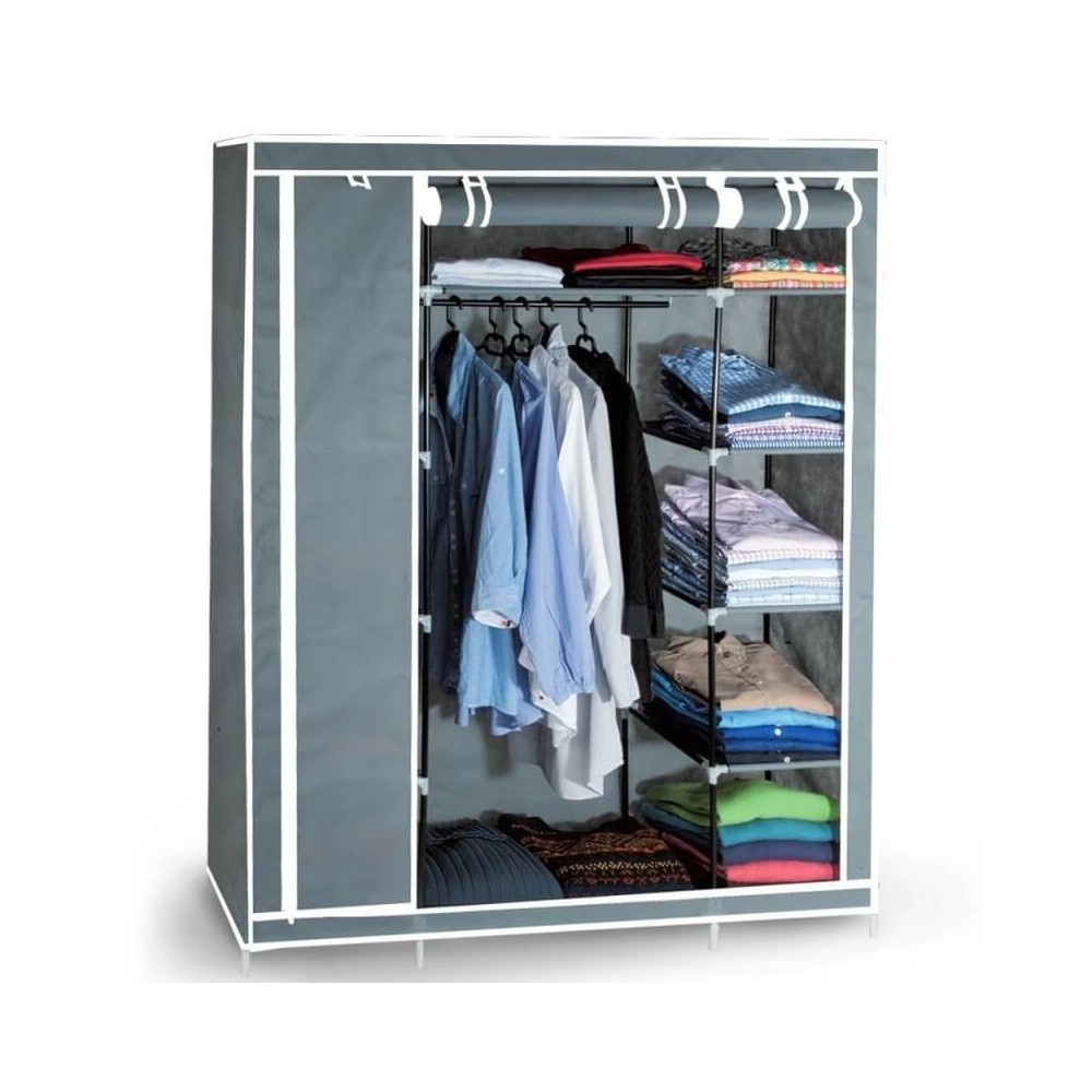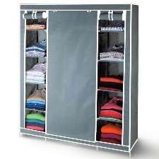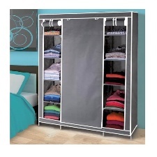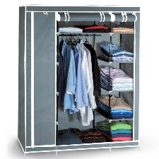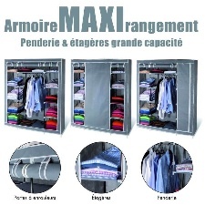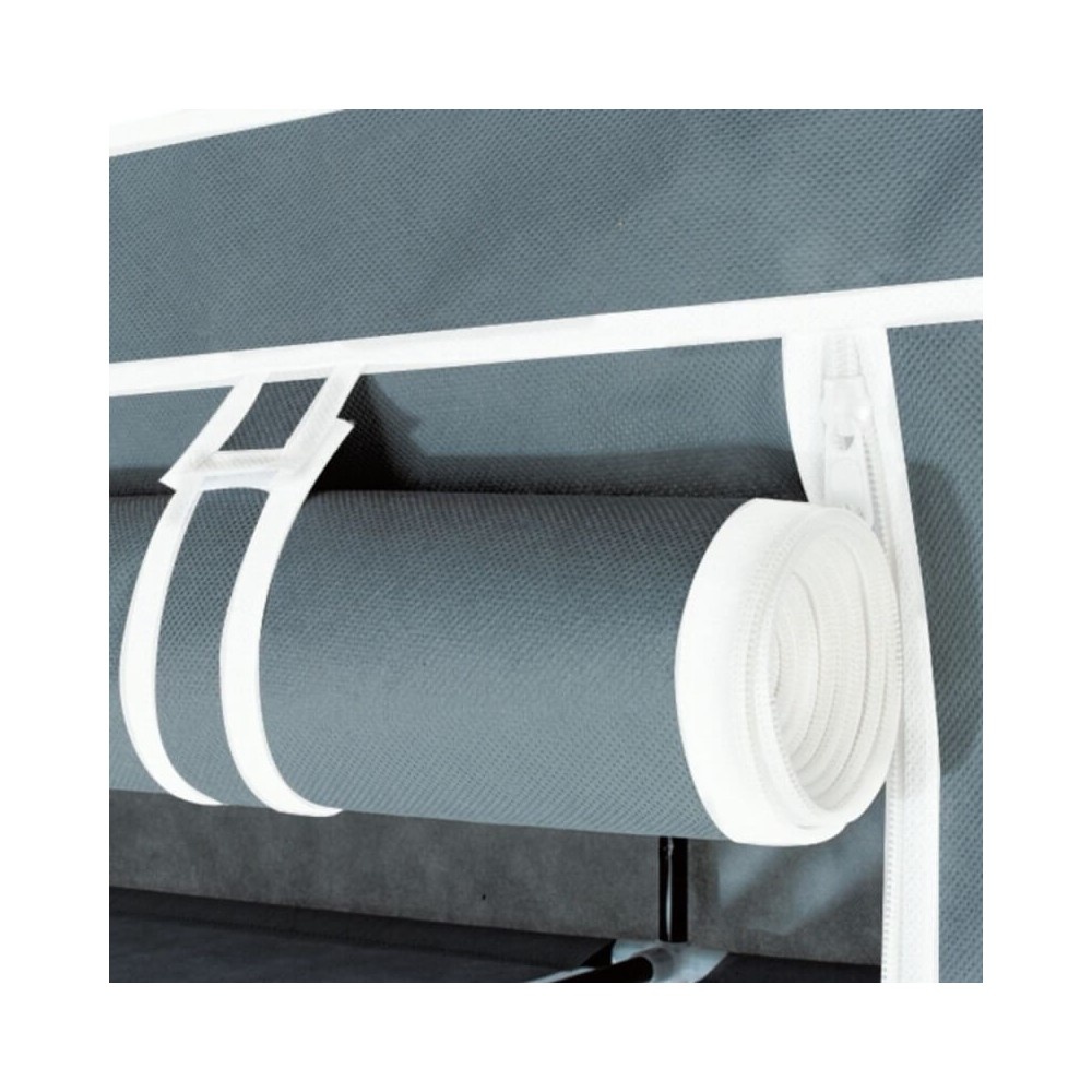 Dimensions : l. 177 x h. 135 x p. 43,5 cm • tubes : Ø 13 x e. 0,23 mm. Matière : tissu non tissé et tubes en acier. Poids : 3 kg environ. Coloris : gris. Poids supporté : 3 kg / étagère.