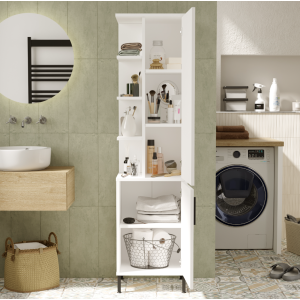 Ce meuble de rangement bois très compact et fonctionnel est idéal pour optimiser l'espace dans vos WC ou votre petite salle de bains. Ne perdez plus de place ! Facile à monter, ce meuble de toilettes offre un joli rendu ainsi que plein de rangements pour accueillir revues, rouleaux de papier toilette, produits d'entretien ou encore diffuseurs de parfum. Dimensions totales du meuble : Largeur : 15,2 cm - Profondeur : 29,8 cm - Hauteur 118 cm.