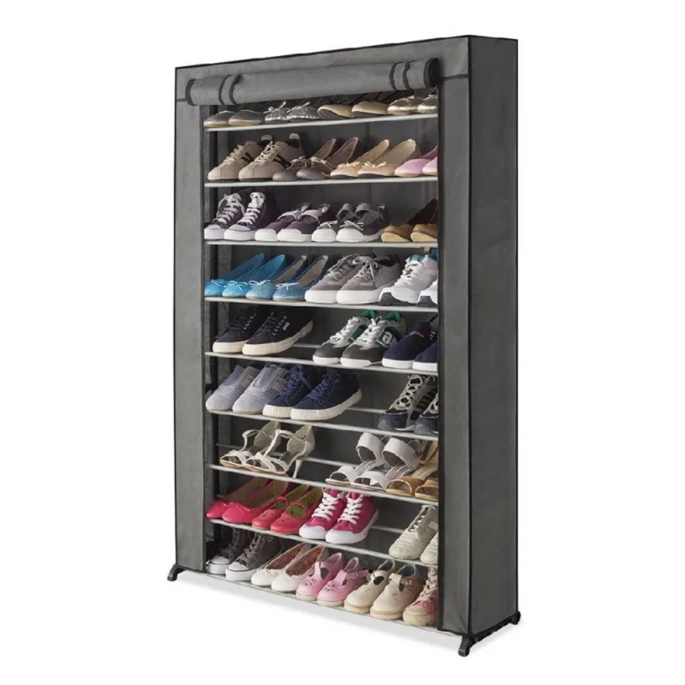 L'étagère range chaussures 50 paires et sa housse grise vous permet de ranger jusqu'à 50 paires de chaussures ! Grâce à son design moderne, élégant et tendance, elle s'adaptera parfaitement à votre intérieur. Sa structure est en acier et à 50% en matériaux recyclés. Vous pouvez stocker jusqu'à 50 paires de chaussures sur ses 10 niveaux grâce à sa grande capacité de rangement. Astucieuse et pratique, elle prend peu de place et vous permet d'optimiser l'espace chez vous !