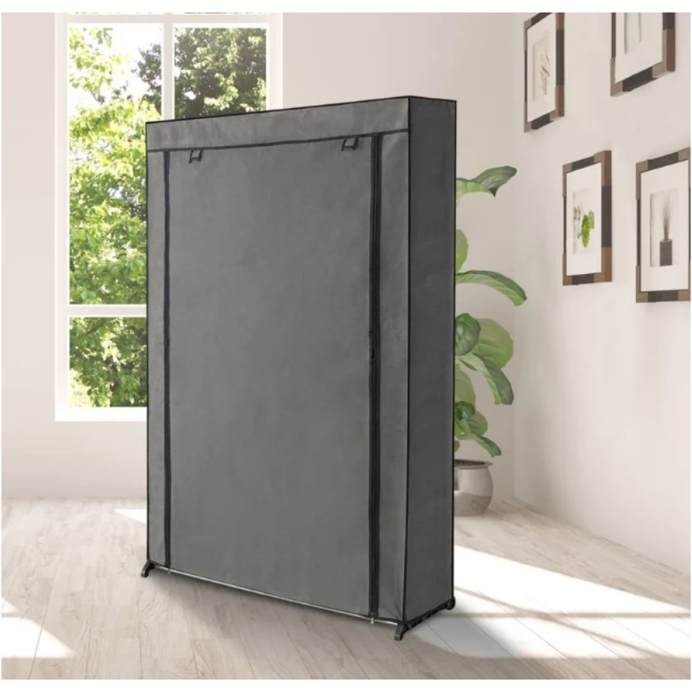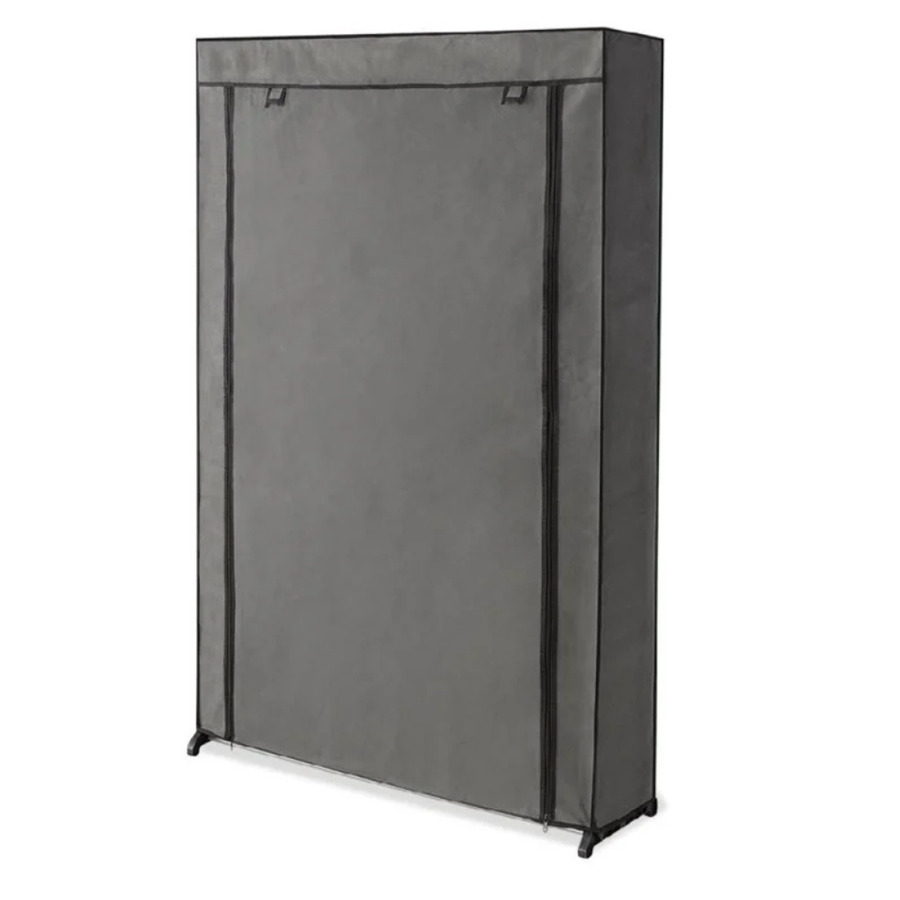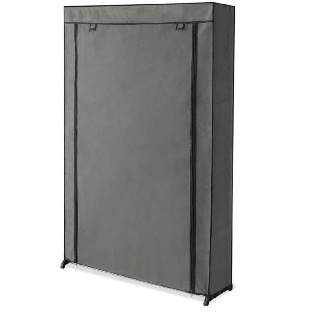 Armoire de rangement dressing 1 porte. Idéale pour ranger et protéger vos vêtements. Grâce à cette armoire de rangement, vous aurez toute la place nécessaire pour suspendre vos chemises, vestes, manteaux ou pantalons. Gardez votre linge à l'abri de la poussière ! La penderie dispose d'une housse en tissu 100 % polypropylène qui s'ouvre et se ferme par fermeture éclair. Informations techniques. Matière : toile non tissé (100 % polypropylène). Dimensions : largeur : 70 cm, hauteur : 150 cm, profondeur : 46 cm. Poids net : 1,77 kg. Accessoires : ouverture/fermeture zippé avec tringle sur la largeur pour suspendre les vêtements. Montage facile.