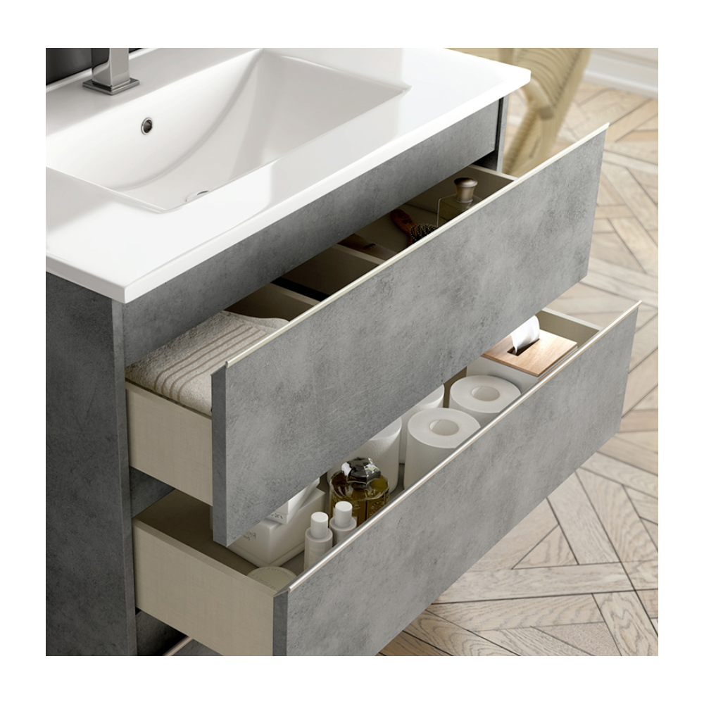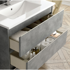 Chambre complète MILANO 160x200 - laquée blanc et gris béton se compose de: Lit 160x200cm - 2x Chevet 2 Tiroirs - Commode 3 Tiroirs - Armoire 4 Portes avec Miroirs - Son look blanc gris béton et chrome modernisera votre déco - Un pack complet et fonctionnel pour aménager entièrement votre chambre avec goût - Structure en panneaux écologiques E1 30 et 18mm - Poignées métal - Glissières et portes avec système de fermeture amortie - Finition : laqué brillant, décorations en plastique chromé - Dimensions : Lit : 213 x 166 x H113cm - Chevets : 85 x 45 x H60cm - Commode : 103 x 45 x H77cm - Armoire : 164 x 59 x H210cm.