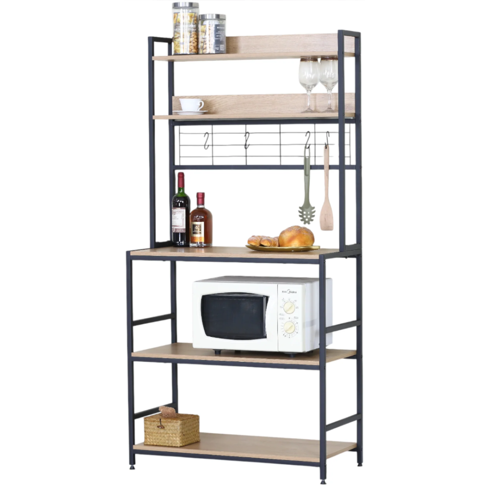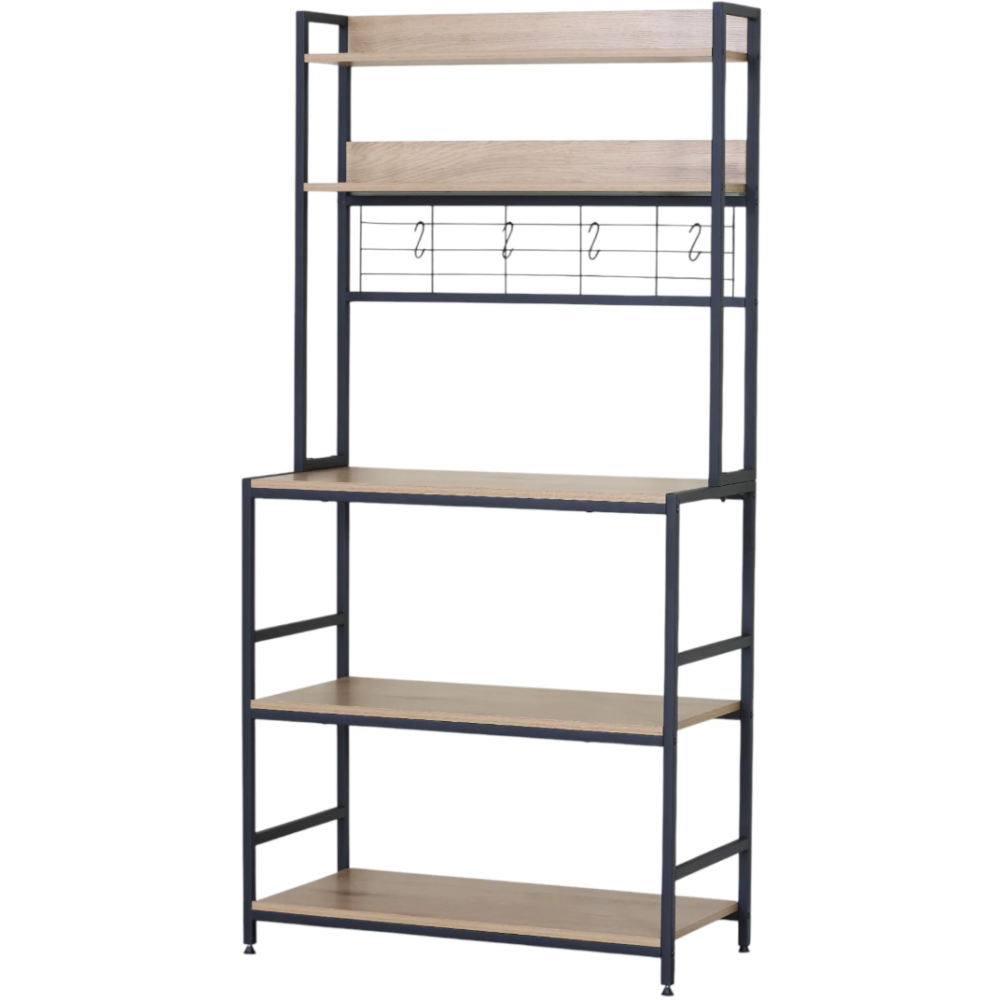 Le meuble de rangement cuisine avec surmeuble YA-05 allie design moderne et grande fonctionnalité pour optimiser votre espace. Sa structure en métal blanc assure robustesse et stabilité, tandis que ses plateaux en bois MDF effet chêne apportent une touche chaleureuse et élégante. Doté de plusieurs niveaux de rangement, de paniers pratiques et d’un espace fermé, il permet d’organiser facilement vaisselle, aliments et petits appareils. Idéal pour les cuisines compactes, il offre une capacité de stockage maximale tout en restant esthétique. Dimensions : 120 x 30 x H 146 cm.