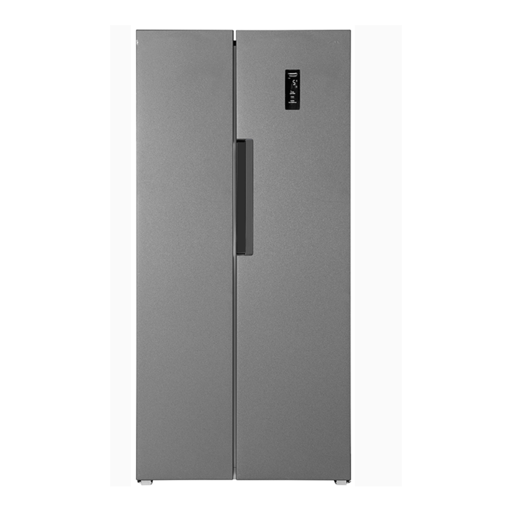 Réfrigérateur américain FROMATIC FAMER444DGE - Pose libre : Oui - Capacité total : 444L - Capacité du congélateur : 168L - Capacité du réfrigérateur : 276L - Type de réfrigérateur : Froid ventilé - Type de clayette : 4 clayette en verre - Réversible : Non - Distributeur d'eau : non - Dégivrage : Automatique - Niveau sonore : 40dB - Classe de consommation énergétique : E - Classe climatique : SN-T - Dimensions en cm (H x L x P) : 173 x 83 x 63 - Poids en kg : 70 - Couleur : Gris.