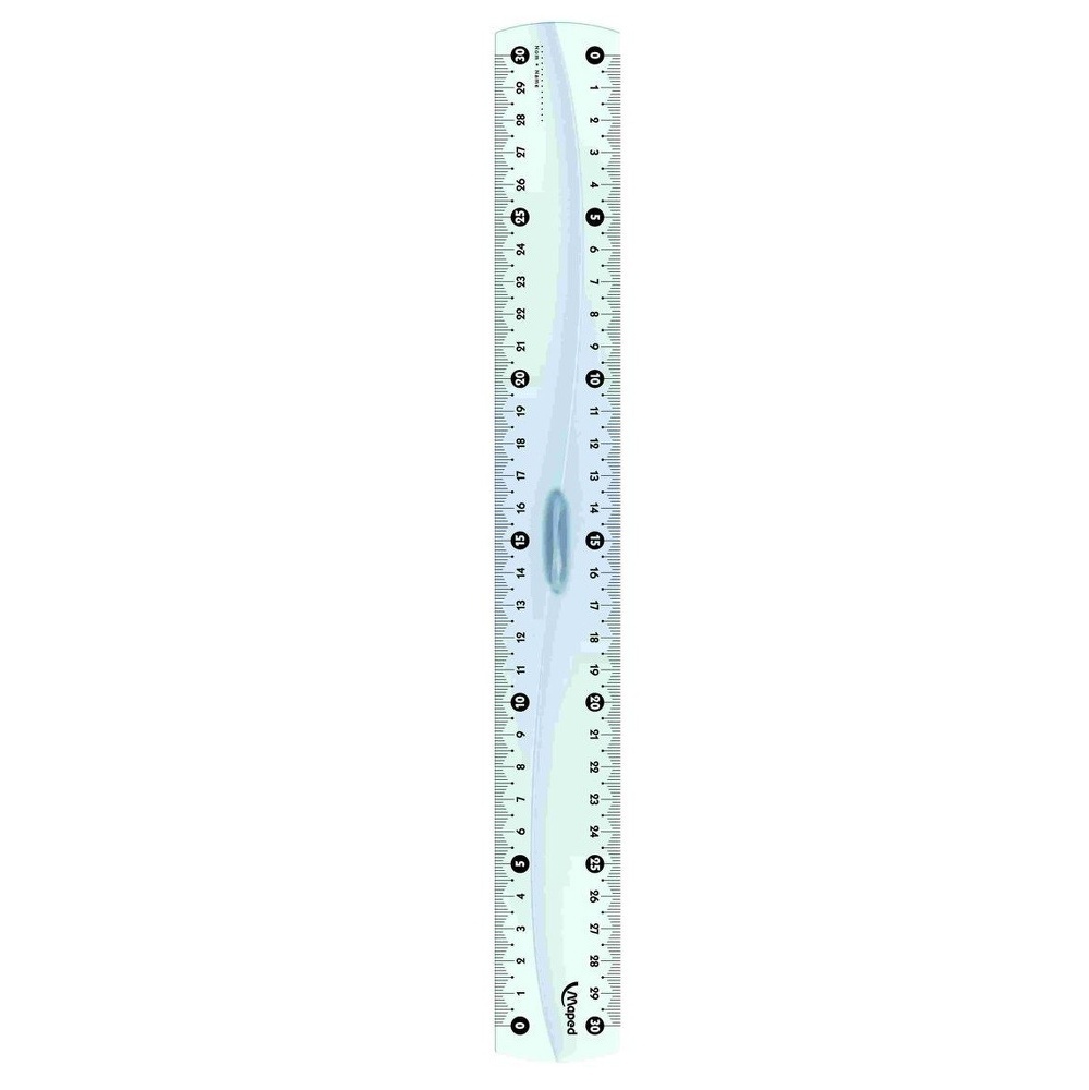 Règle 30 cm start. Longueur: 30 cm - Matériel: en plastique transparent - Graduations appliquées avec de l'encre UV pour une résistance optimale - Personnalisable: espace pour écrire votre nom. Graduations progressives, marques visuelles tous les 5 cm - Avec poignée centrale.