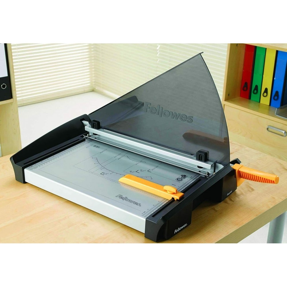 Un excellent investissement pour les environnements de bureau, la guillotine Fellowes Plasma A3 réduit facilement et rapidement les rapports, les documents commerciaux et diverses impressions pour vos besoins de bureau.