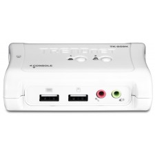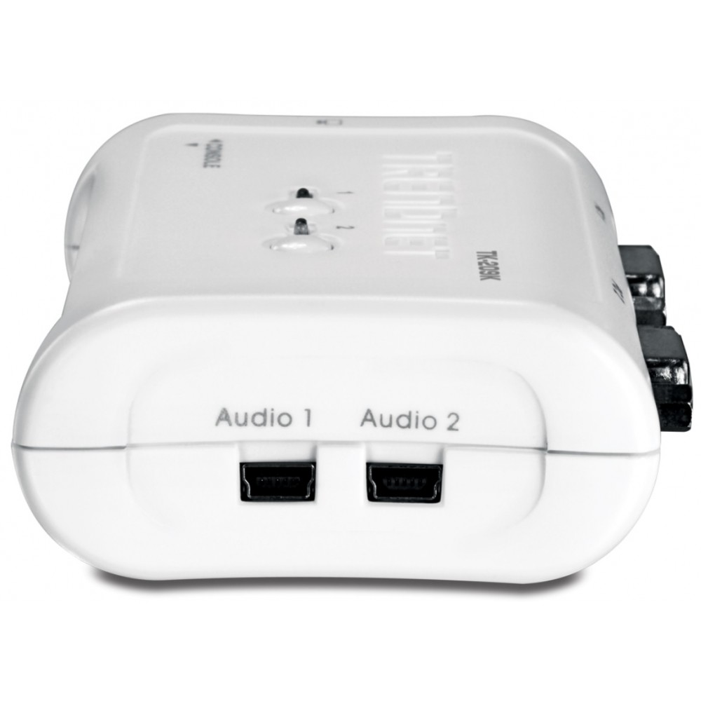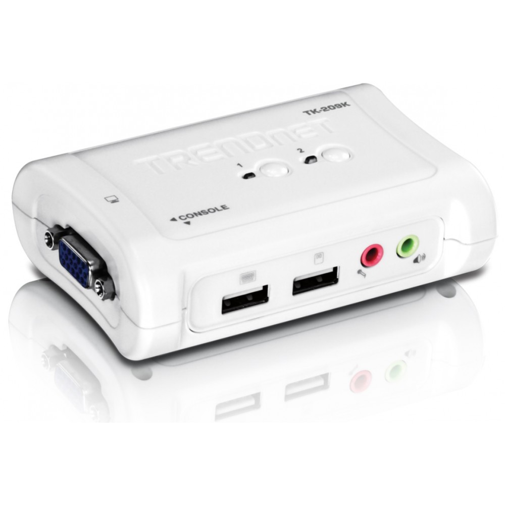 Le Switch audio KVM à 2 ports USB vous permet de contrôler des PC multimédia à l’aide d’un seul clavier, d’un moniteur, d’une souris, d’un micro et d’une paire de diffuseurs. Le switch KVM vous permet non seulement de partager votre moniteur, votre clavier et votre souris mais également de partager votre micro et vos diffuseurs. En appuyant simplement sur un bouton, il élimine les enchevêtrements de câbles passant entre 2 PC. Grâce à ses fonctions de connectivité à chaud, de recherche automatique et ses touches de raccourci, le TK-209K est le choix idéal pour le partage de 2 PC. Des câbles KVM séparés sont fournis.