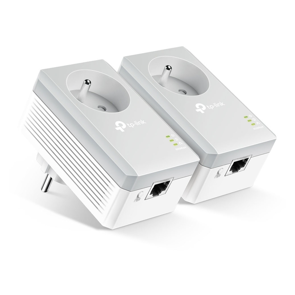 Pack de 2 adaptateurs CPL TP-Link HomePlug équipé d'une prise intégrée à chaque adaptateur permettant à d'autres appareils d'accéder à une source électrique - Fonctionne avec une vitesse de près de 600 Mb/s et offre une portée de près de 300 mètres via le réseau électrique.