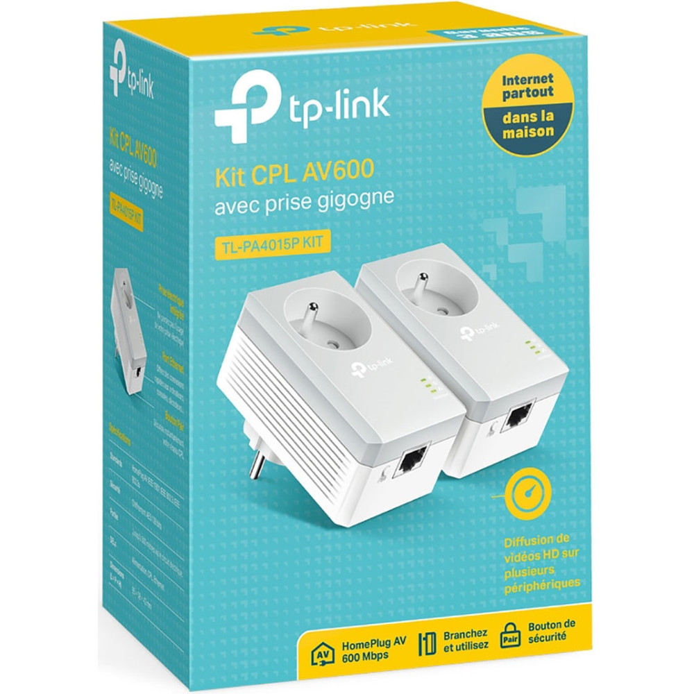 Le pack CPL TP-LINK TL-PA4015PKIT transforme votre circuit électrique en un réseau haut débit sans avoir à tirer de nouveaux câbles ou à percer des trous. Aucune configuration n'est requise, branchez simplement vos adaptateurs dans une prise électrique et créez un réseau CPL en un éclair ! - Compatible avec le standard HomePlug AV, transferts de données haut débit jusqu'à 600 Mb/s : idéal pour les vidéos HD et les jeux en ligne - Prise électrique intégrée permettant à d'autres appareils d'accéder à une source électrique - Filtre les fréquences parasites pour des performances CPL optimales - Portée des signaux jusqu'à 300 m via le réseau électrique, pour les meilleures performances à travers murs et planchers - Plug & Play : pas de nouveaux câbles ni de configuration nécessaire...