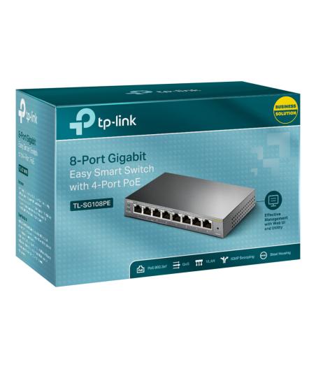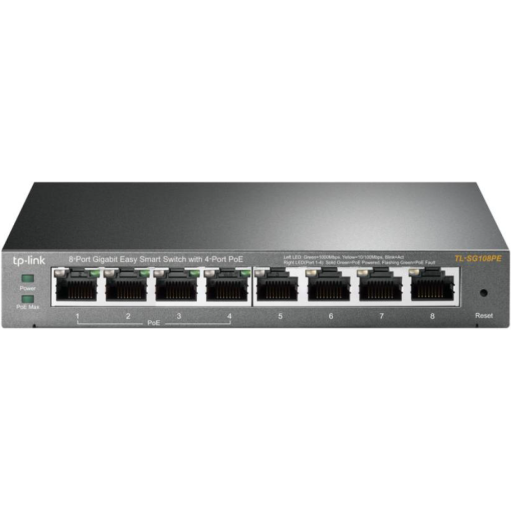 TP-Link Easy Smart TL-SG108PE - Commutateur - intelligent - 4 x 10/100/1000 (4 PoE+) + 4 x 10/100/1000 - de bureau - PoE+ (64 W)