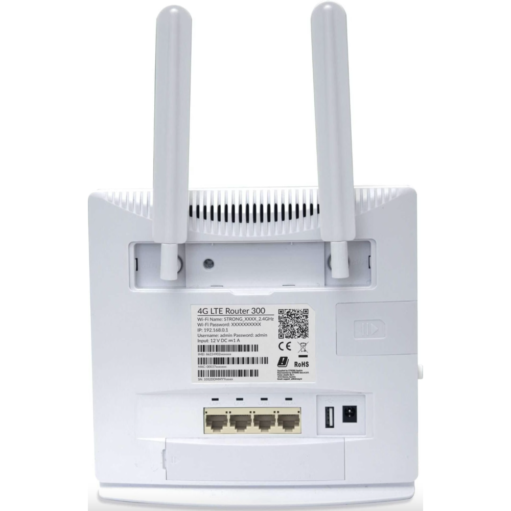 Mini Routeur STRONG 4GROUTER300M 4G LTE Router 300 Mini - Partage de connexion 4G LTE partout, avec tout appareil Wi-Fi ou filaire - Plug & Play : insérez une carte SIM, aucune configuration nécessaire - Compact et élégant : design ultra-portable - 4G LTE : jusqu’à 150 Mbps – compatible avec toutes les cartes SIM, tous opérateurs - Wi-Fi : jusqu’à 300 Mbps (IEEE 802.11b/g/n à 2,4 GHz) - Port Ethernet : 1x LAN pour connecter un appareil filaire - Antennes : 2 antennes LTE externes (SMA) + 2 antennes Wi-Fi internes - Sécurité Wi-Fi : WPA/WPA2, bouton WPS, bouton Wi-Fi On/Off - EAN : 9120072372582.