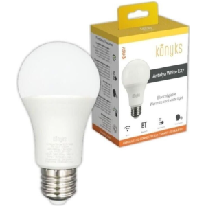 Ampoule Antalya de couleur blanche dotée d’un culot E27 et nécessitant une tension de 230V AC pour fonctionner correctement - Procure un éclairage puissant de 9 watts et une luminosité de780 lumens - Offre la possibilité d’être pilotée à distance avec Alexa, Google Home ou Siri - La couleur de l’ampoule est réglable du chaud au froid de 3000K à 6500K - Intègre la technologie Bluetooth qui prend la relève en cas de coupure de Wi-Fi, afin de maintenir l’ampoule connectée - Conçue avec un design compact et une technologie LED écoénergétique garantissant une durée de vie de 20 000 heures - Poids de l’ampoule 39 grammes - Dimensions de l’ampoule : 118 mm de haut et 60 mm de diamètre - Fonctionne avec un angle d’éclairage de 180°.