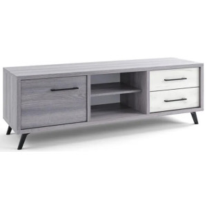 Bureau d'angle T168 exécutif en L - Base et cadre en MDF de qualité et raffiné avec cadre en acier et aluminium - Tiroir amovible - Couleurs: blanc et gris.