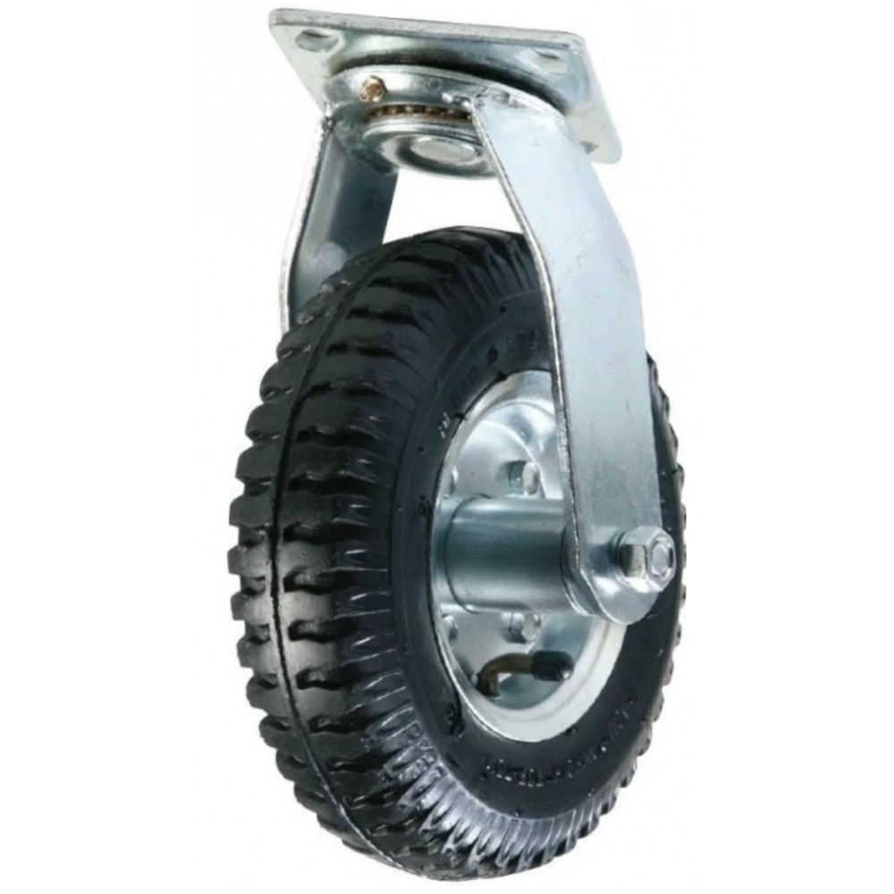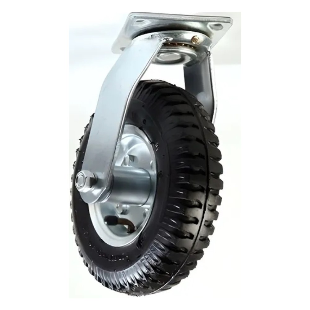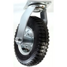 Roulette gonflable pivotante. Roulette pivotante et gonflable idéale pour équiper vos chariots, caissons ou meubles. Maniables, les roulettes vous permettent de manœuvrer facilement. Informations techniques. Dimensions : - du socle : longueur : 11,4 cm, largeur : 10 cm. Espace entre les trous de fixation : longueur : 9 cm, largeur : 7 cm - de la roue : diamètre : 220 mm environ, hauteur : 26 cm. Poids maximal supporté : 120 kg.