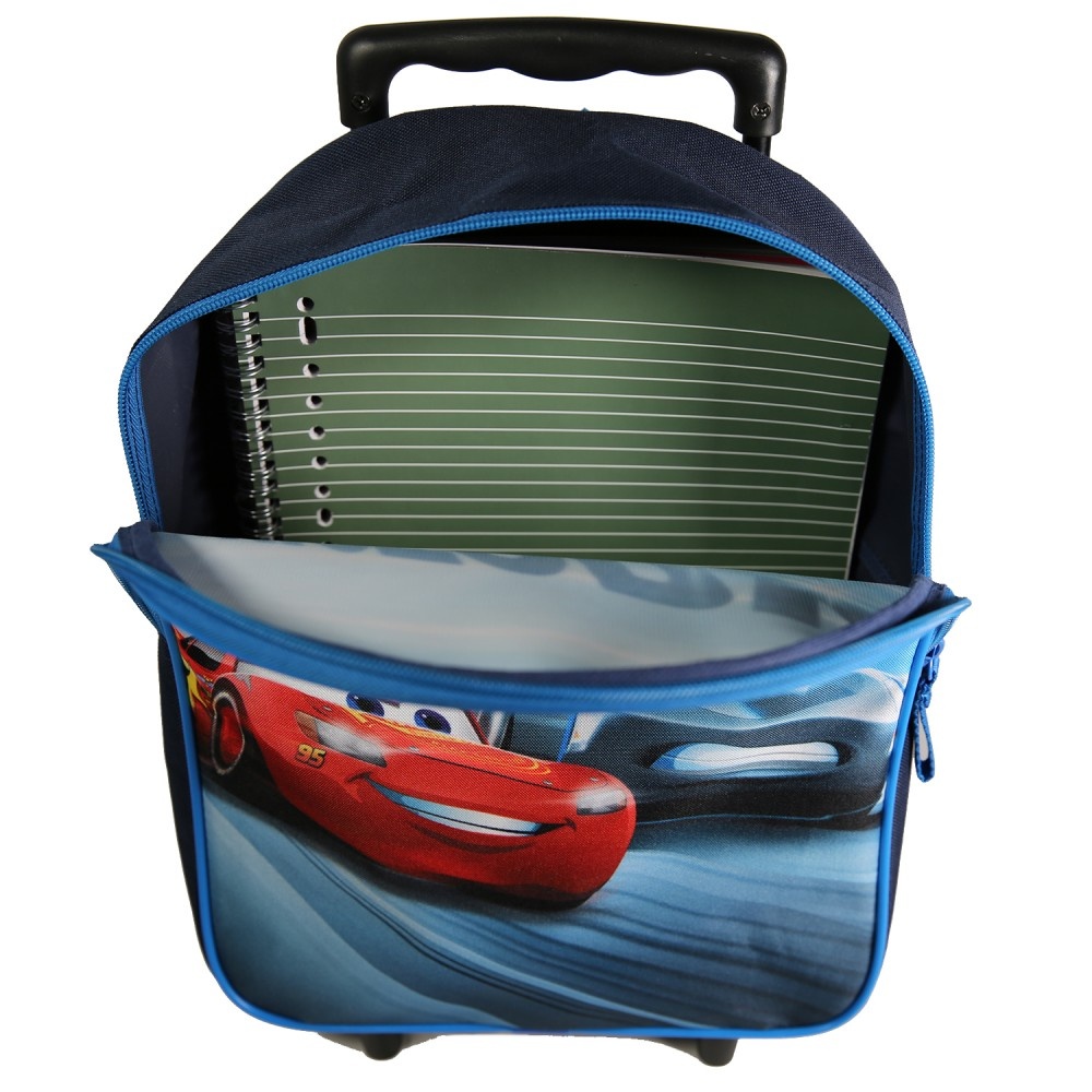 Le sac à dos goûter à roulettes Cars 31cm est le sac taillé pour la course sur circuit, faites chauffer le moteur et c'est parti ! La course prend tout son sens avec Flash McQueen et Jackson Storm en pole position ! Votre enfant transportera ses affaires facilement dans le grand compartiment zippé. Ses dimensions de 25cm de long, 11cm de large et 31,5cm de haut sont idéales pour les classes de maternelle.