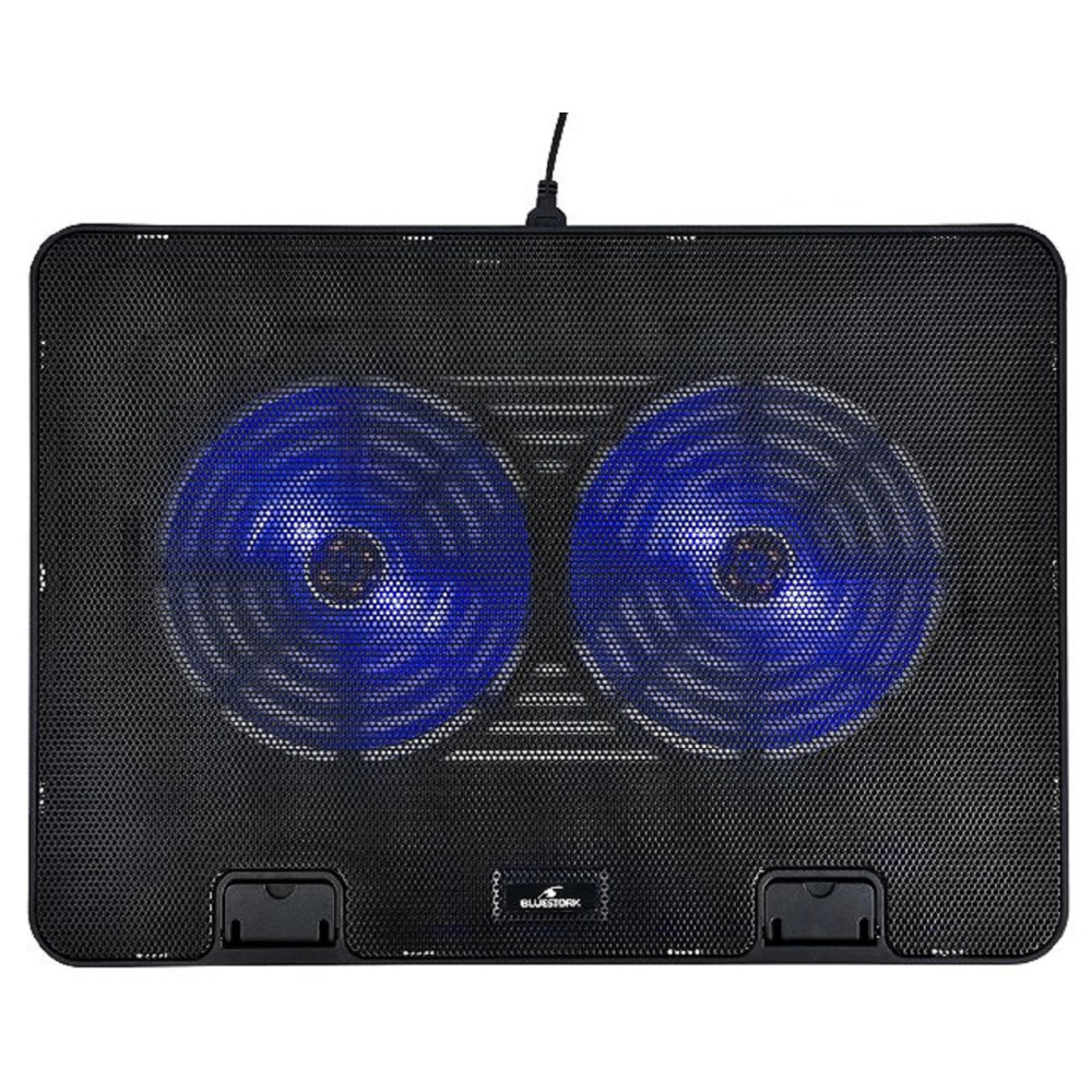 Support ventilé pour ordinateur portables Bluestork BS_NB_COOLER_ONE - Taille maximum d'écran : 43,2 cm (17") - Nombre de ventilateurs intégrés : 2 pièce(s) - Vitesse de rotation (min) : 1000 tr/min - Couleur du produit : Noir - Interface de l'hôte : USB.