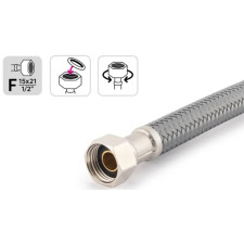 Flexible d'alimentation m/f 15 x 21 de 50 cm. Ce tuyau flexible est idéal pour raccorder votre chauffe-eau au réseau. Composé d'un tressage en PET, il est plus léger, plus maniable et plus résistant à la corrosion. Le matériau intérieur limite la prolifération bactérienne. L'ensemble est certifié ACS (attestation conformité sanitaire). L'écrou libre avec son joint inclus facilite l'installation et le serrage dans les espaces difficiles d'accès Flexible avec tube intérieur annelé, insensible à la pliure, grande facilité d'installation, débit constant garanti. Résistance totale à la corrosion (eau de javel, produits ménagers de nettoyage, milieux salins) et résistance aux rayons UV avec ses fibres en polymère.