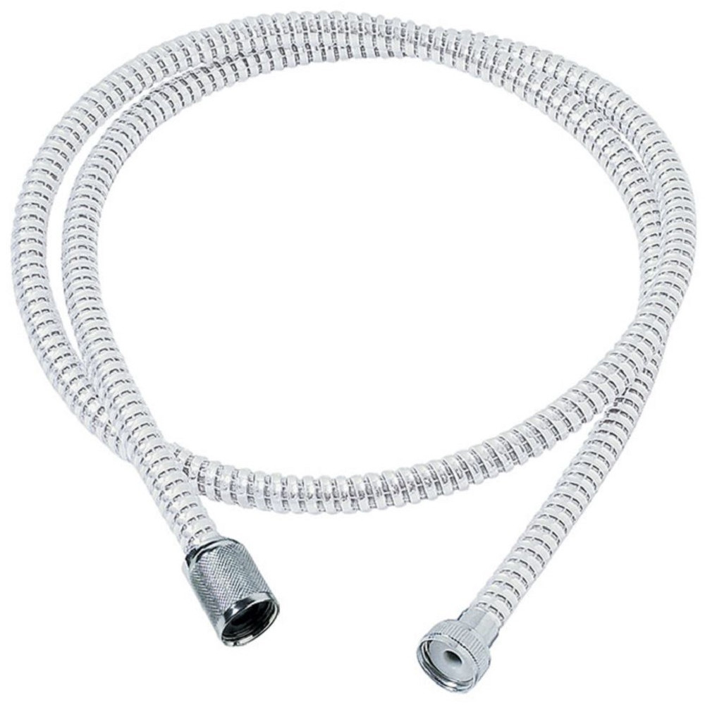 Flexible en PVC annelé - Marque : WIRQUIN - Couleur : Blanc - Longueur : 1,5 mètres - Écrou de robinetterie en laiton chromé - Écrou de douchette en ABS chromé.