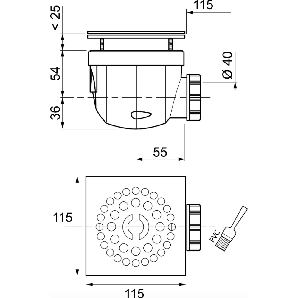 Bonde de douche WIRQUIN 34040501 Twisto - Marque : WIRQUIN - Référence : 34040501 - Type : Bonde de douche - Diamètre trou de bonde : 90 mm - Matière : Inox - Origine : Fabriqué en France - Grille carrée en inox brossé 115 × 115 mm pour douches carrelées - Débit : 30 L/min sous 15 mm de hauteur d'eau, 36 L/min sous 40 mm de hauteur d'eau - Garde d'eau : 50 mm - Sortie horizontale Ø40 mm à visser ou coller - EAN : 3375539063428.