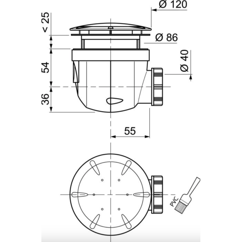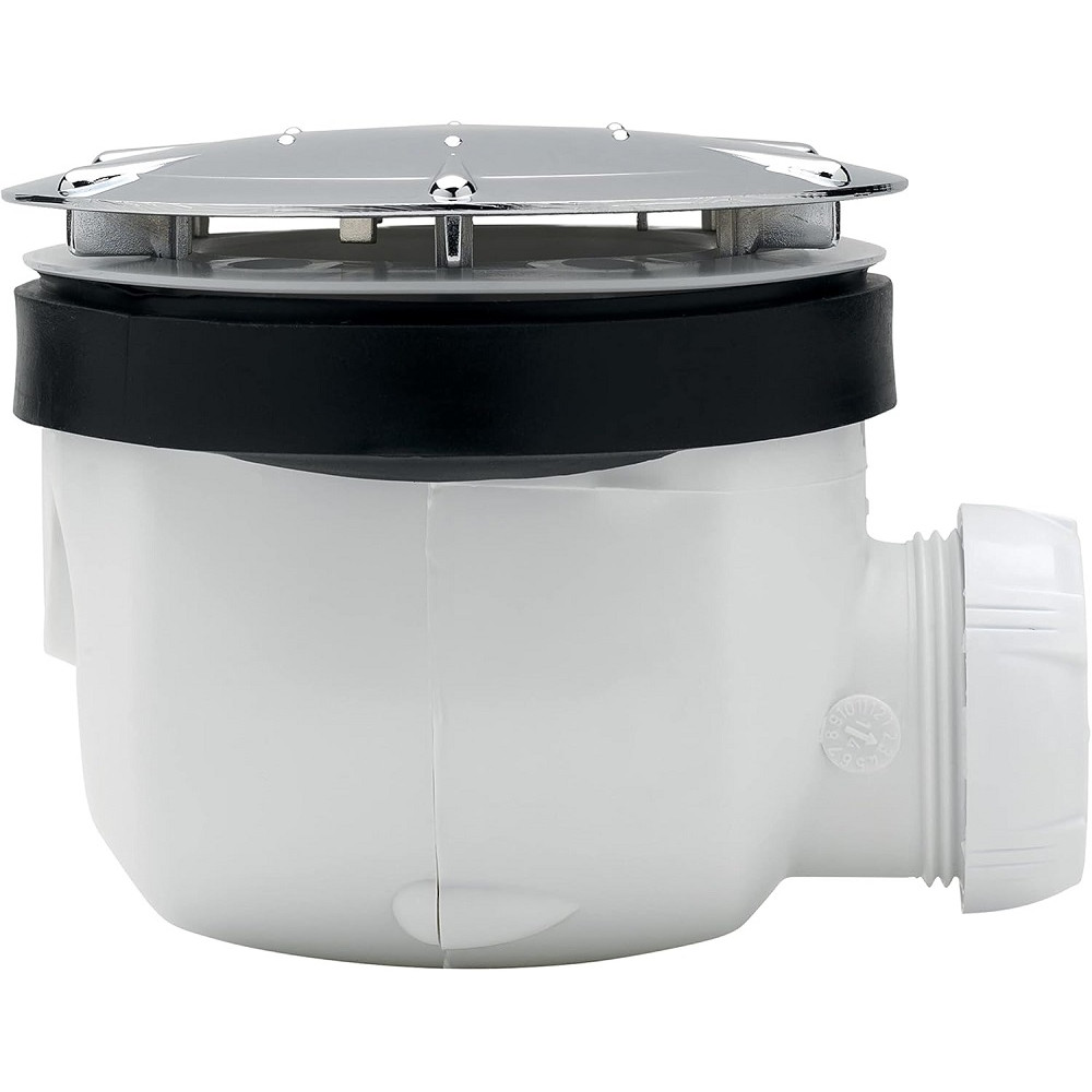 Bonde de douche WIRQUIN 34040001 Twisto de Ø 90 mm - Dôme en ABS chromé - Débit rapide : 30 L/min sous 15 mm d'eau et 36 L/min sous 40 mm d'eau - Garde d'eau de 50 mm - Dimensions compactes : 130 x 120 x 90 mm (hauteur sous le receveur) - Sortie horizontale de Ø 40 mm à visser ou coller - EAN : 3375536039631.