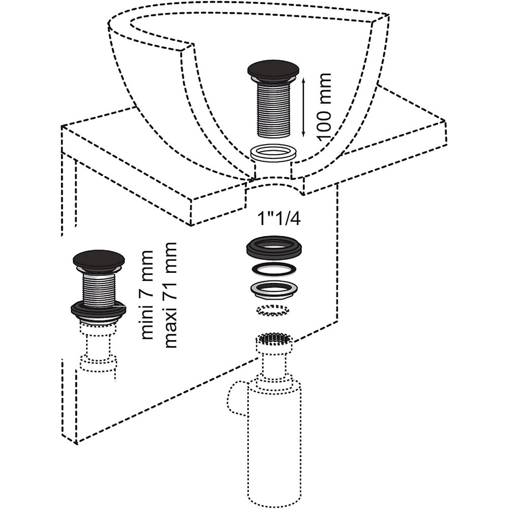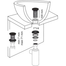 Bonde de lavabo à écoulement libre WIRQUIN 30723915 Black Touch - Diamètre d’entrée de la bonde : Standard lavabo - Diamètre de sortie de la bonde : 1’’1/4 - Matière principale : Laiton - Finition de la bonde : 100 % métal - Option de la bonde : Sans trop-plein - Laiton de haute qualité : Grade 9 - Résistance au brouillard salin neutre (NSS) : 200 h - Diamètre du trou d'évacuation : 32 mm - Largeur : 70 mm - Poids : 0,309 kg - Hauteur : 10 cm - Longueur : 70 mm - Usage intérieur/extérieur : Au-dessus du sol - Convient pour siphon : Bain - EAN : 3375537237500.